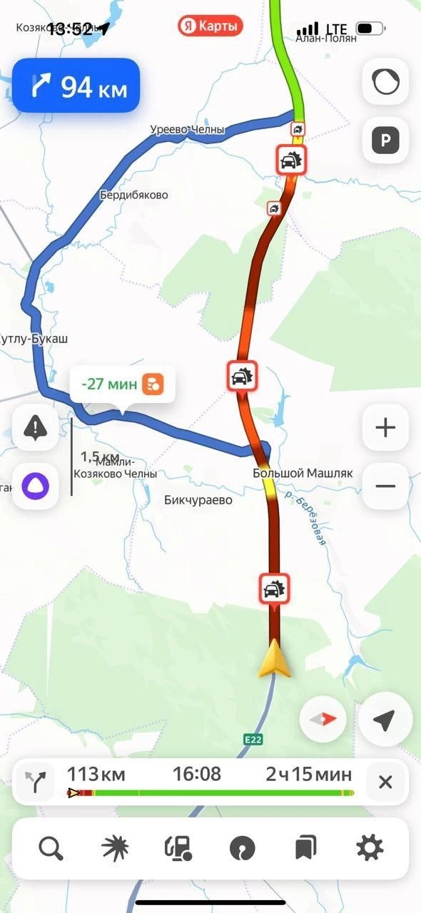 Трасса Челны Казань встала. Дтп чуть дальше Мамадыша в сторону Казани.