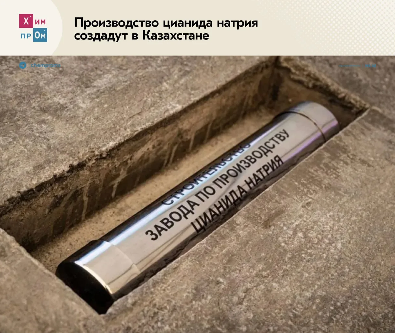 • Завод — в Казахстане начали строительство завода по выпуску цианида натрия.