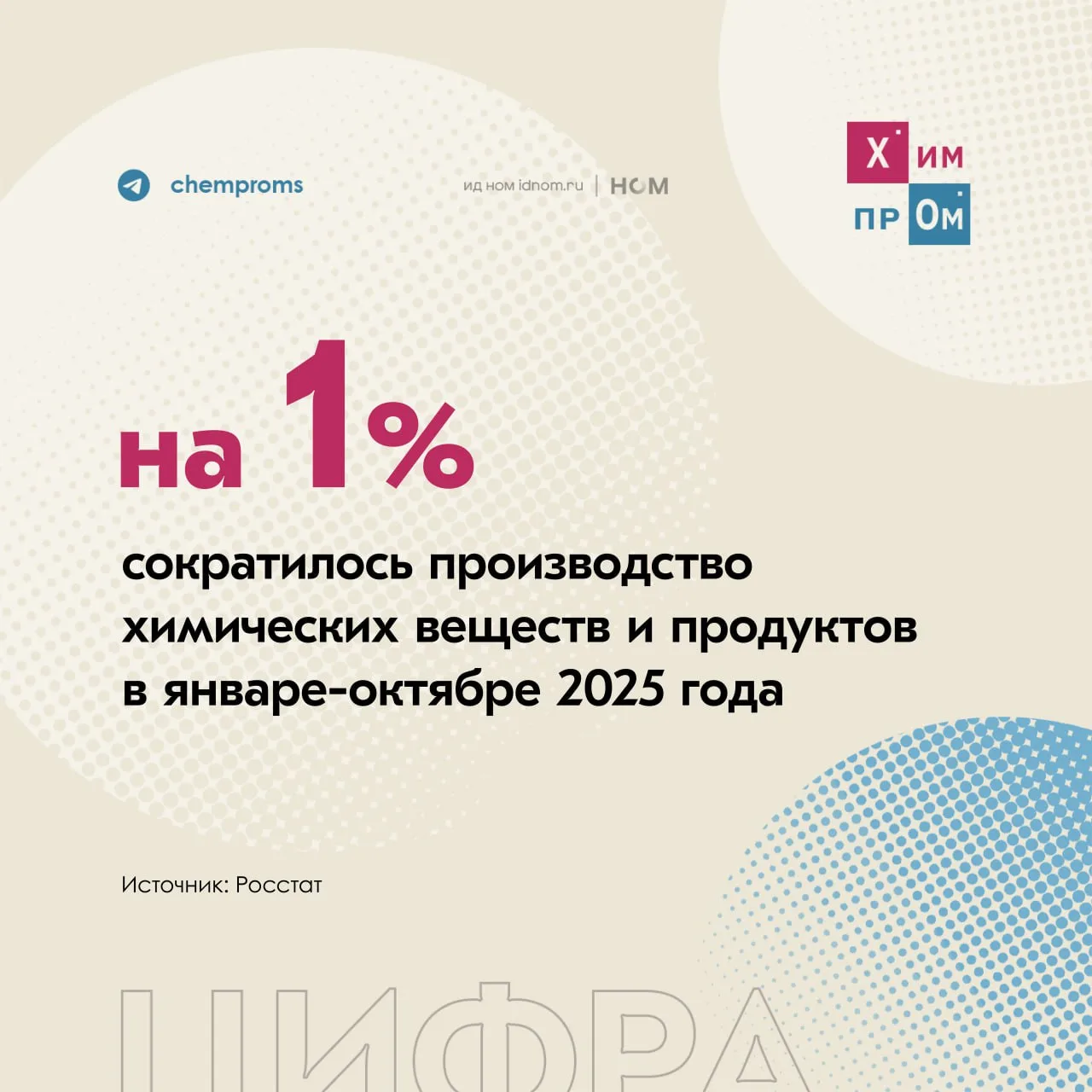 • Спад — производство химической продукции снизилось в январе-октябре 2025 года.