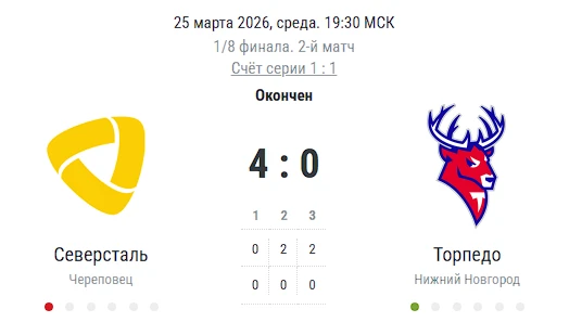 «Северсталь» разгромила «Торпедо» в домашнем матче со счётом 4:0
