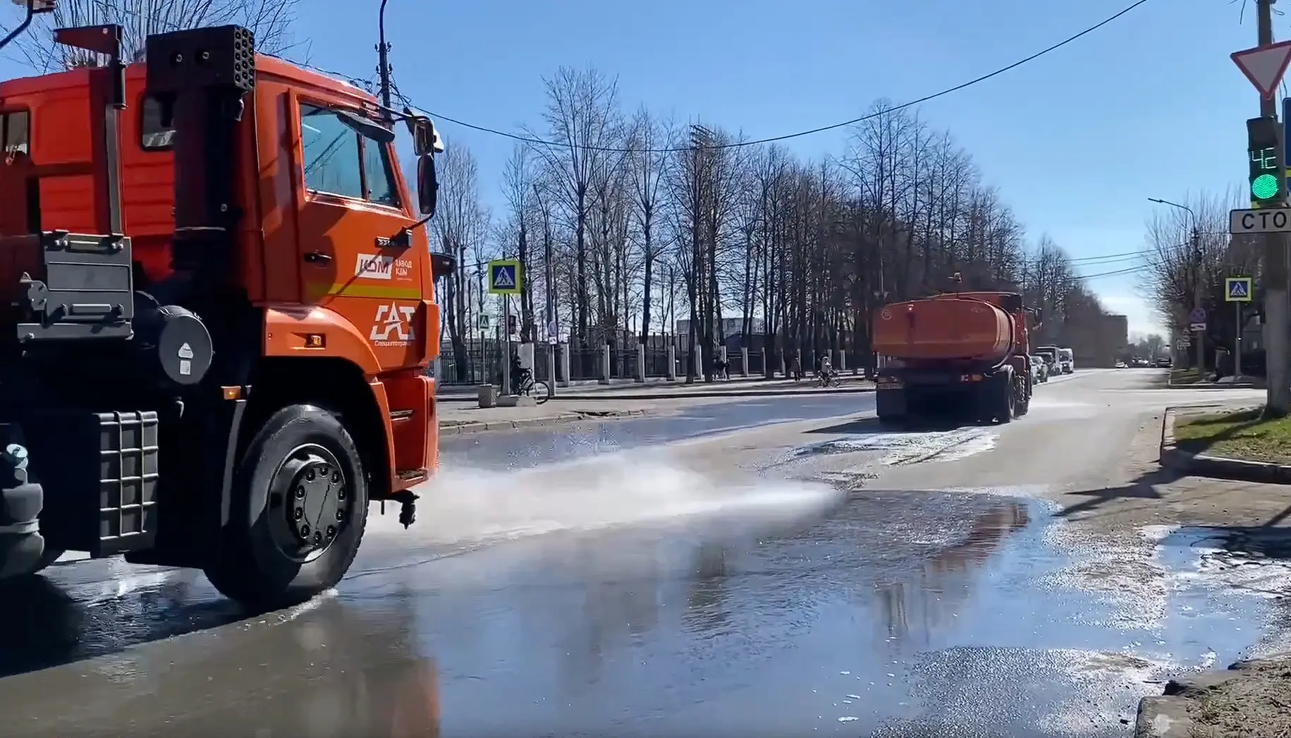 ❗️Сегодня в Череповце приступили к мойке улиц с применением шампуня