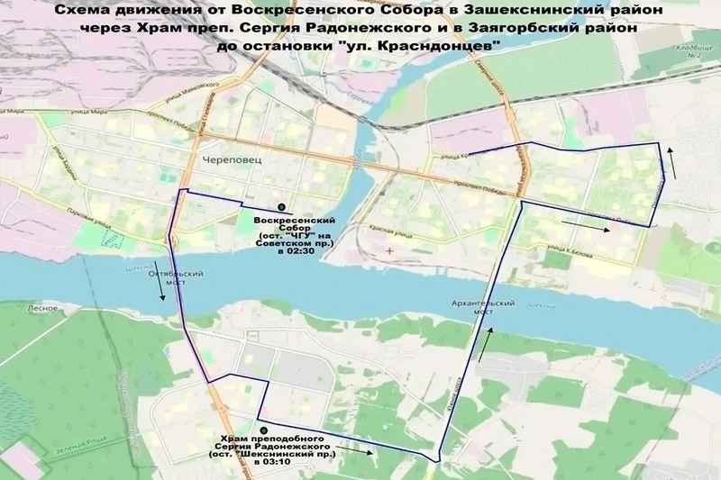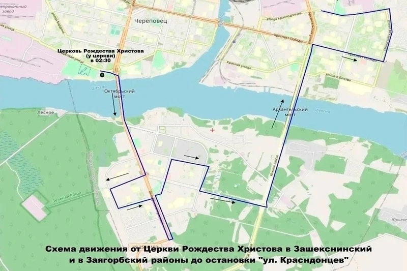После праздничных служб в церквях пассажиров будут развозить по нескольким маршрутам: от Воскресенского собора — в Заречье и в Зашекснинский район, от кафедрального собора — в Индустриальный и Северный районы, от церкви Рождества Христова — в Заречье и Зашекснинский район.