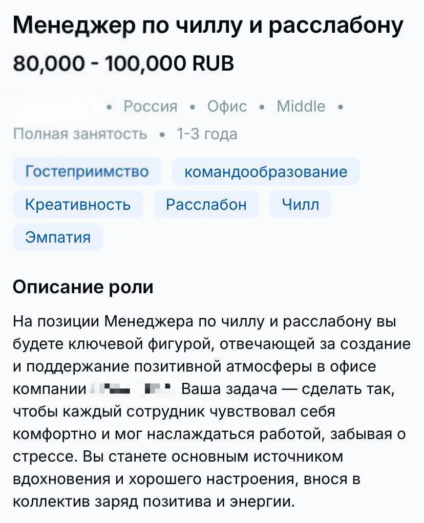 😅Менеджера по чиллу и расслабону с зарплатой до 100 тысяч рублей ищут в Москве.