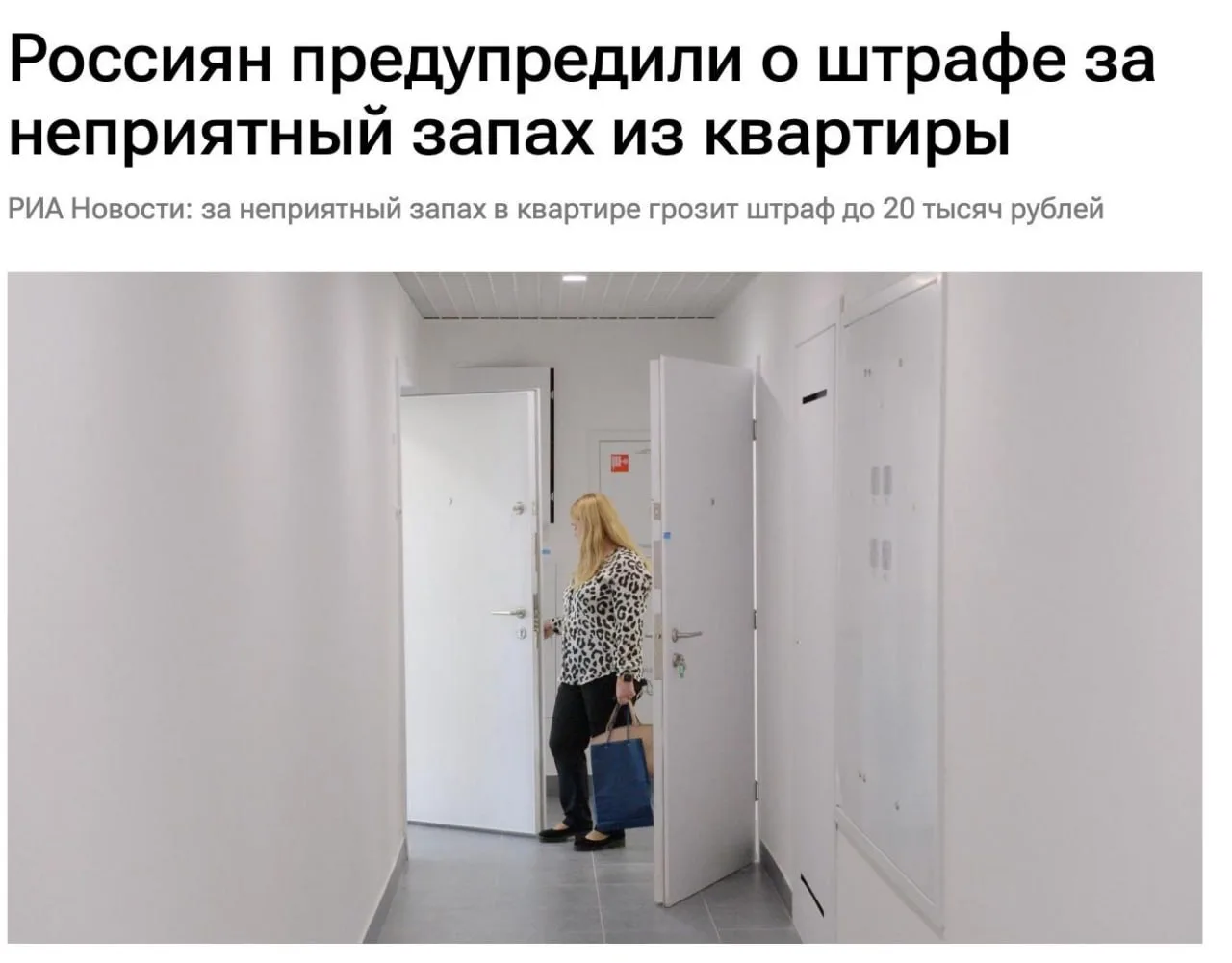 ❌ Россиян будут штрафовать до 20 тысяч рублей за неприятные запахи из квартиры, предупреждают эксперты