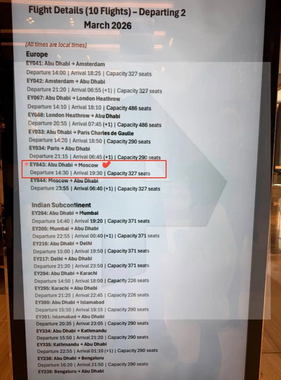 ✈️ В аэропорту Абу-Даби открыли регистрацию на некоторые рейсы, в том числе в Москву, сообщается на сайте аэропорта.