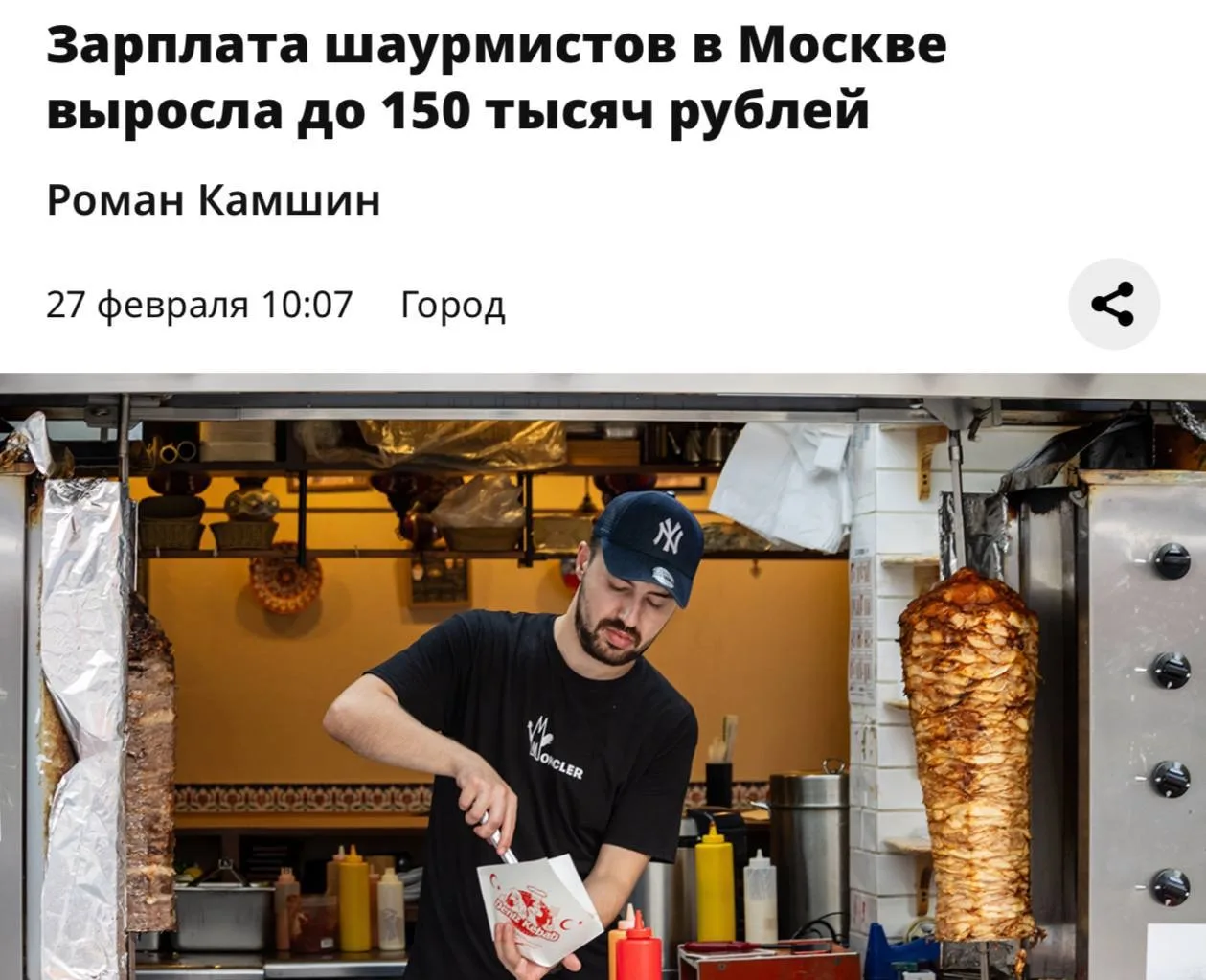 🥙Зарплата шаурмистов в Москве взлетела на 15% и достигает 150.000₽, — статистика.