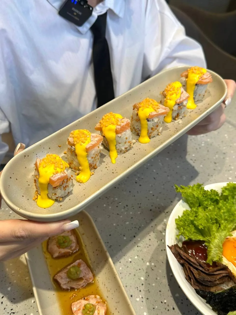 🤩Многим американцам сырая рыба казалась чем-то странным, поэтому повара в японских ресторанах начали адаптировать суши под местные вкусы.