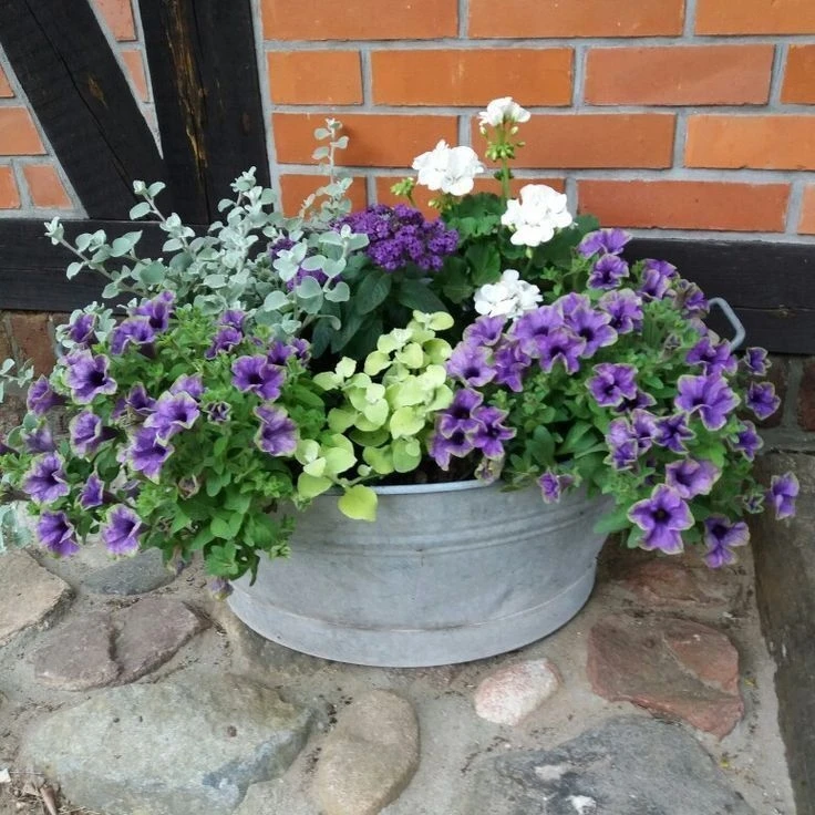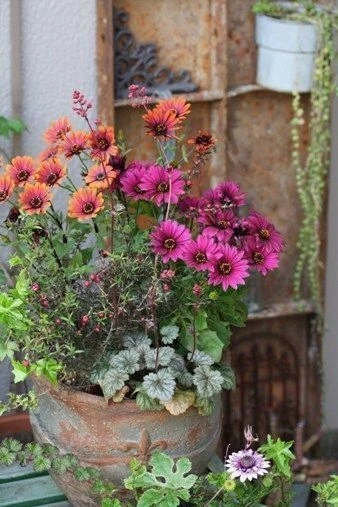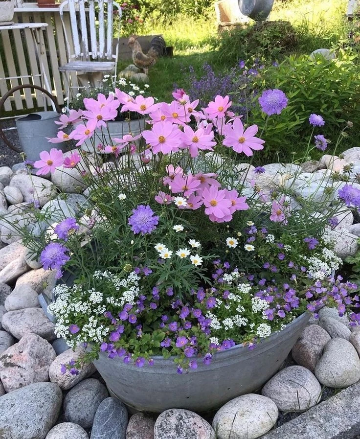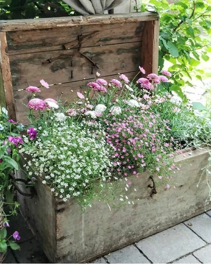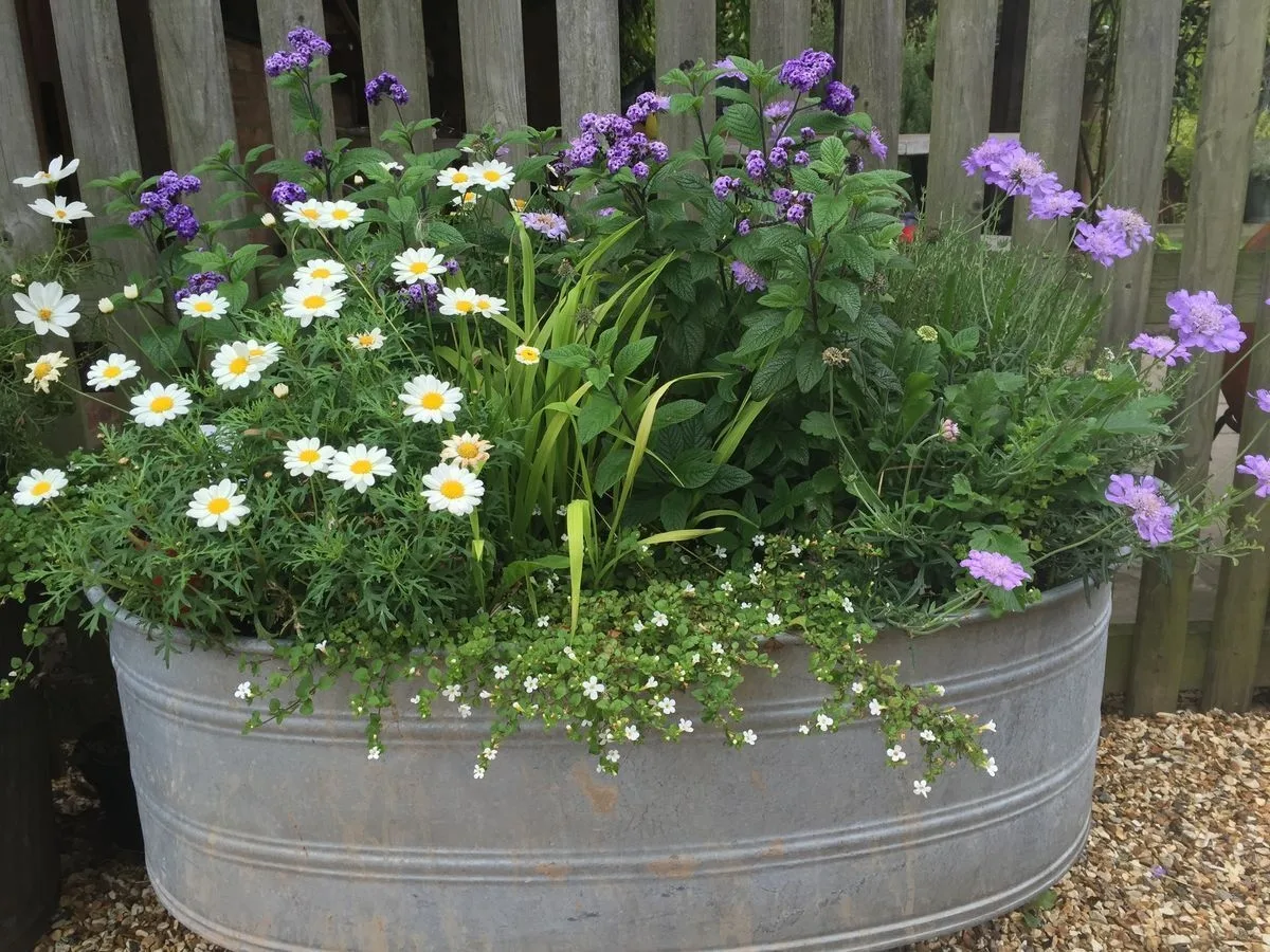 Растения посажены в ведра, ящики, вазоны и другие ёмкости.
