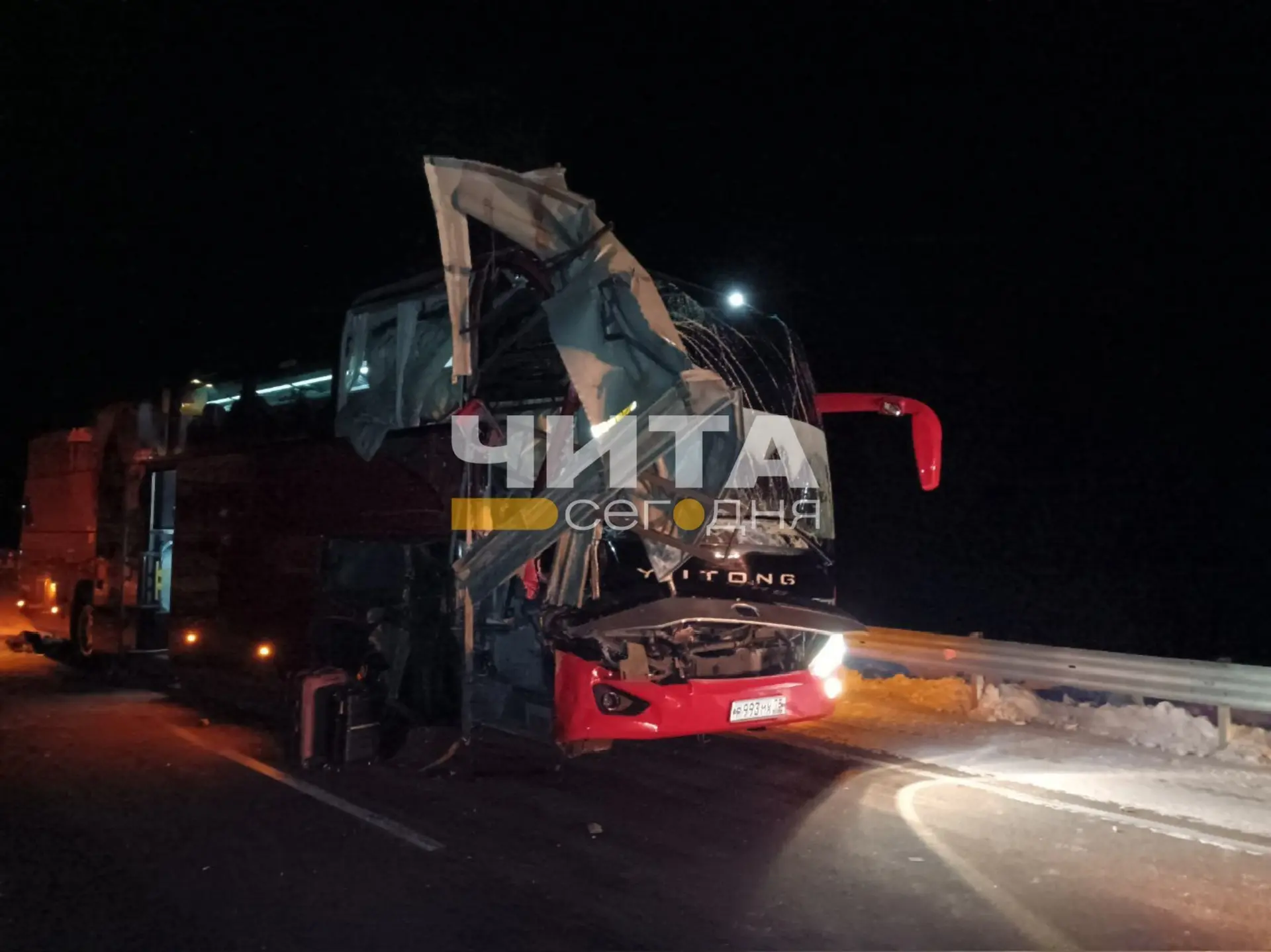 В ночь на 15 января в Могочинском округе произошла авария с участием автобуса и большегруза. Автобус с вахтовиками врезался в грузовик, который из-за поломки стоял на обочине федеральной трассы Чита — Хабаровск и был обозначен дорожными знаками.