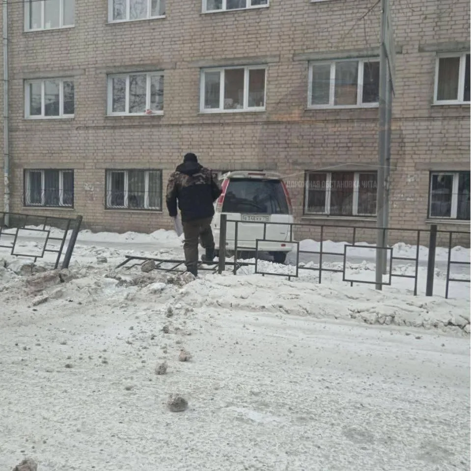 В Чите машина снесла забор и врезалась в общежитие ЗабГУ.