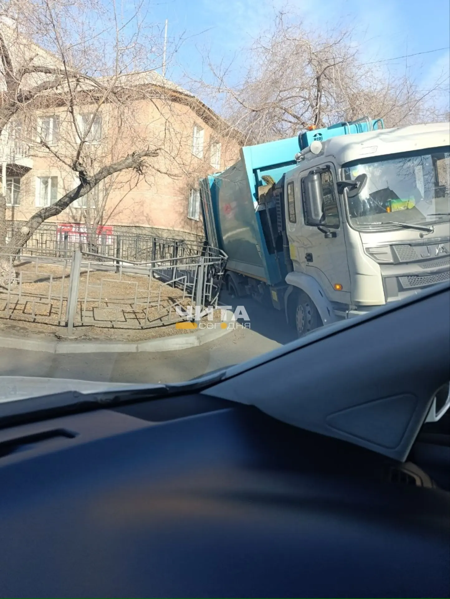 На Ленинградской мусоровоз провалился под асфальт задними колёсами