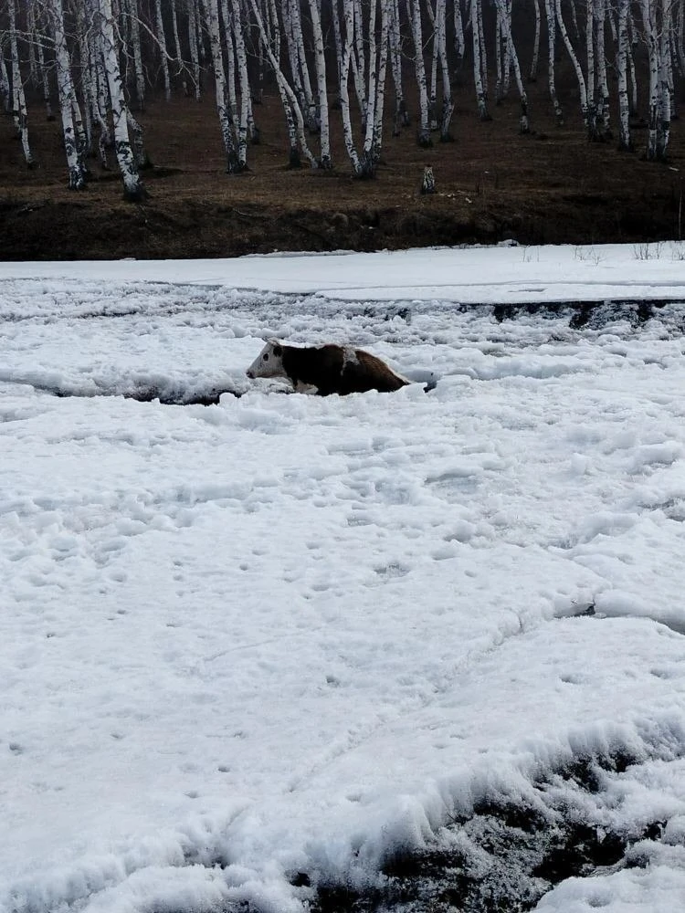 Неужели некому помочь корове? Верёвкой длинной тянуть её за рога на берег.