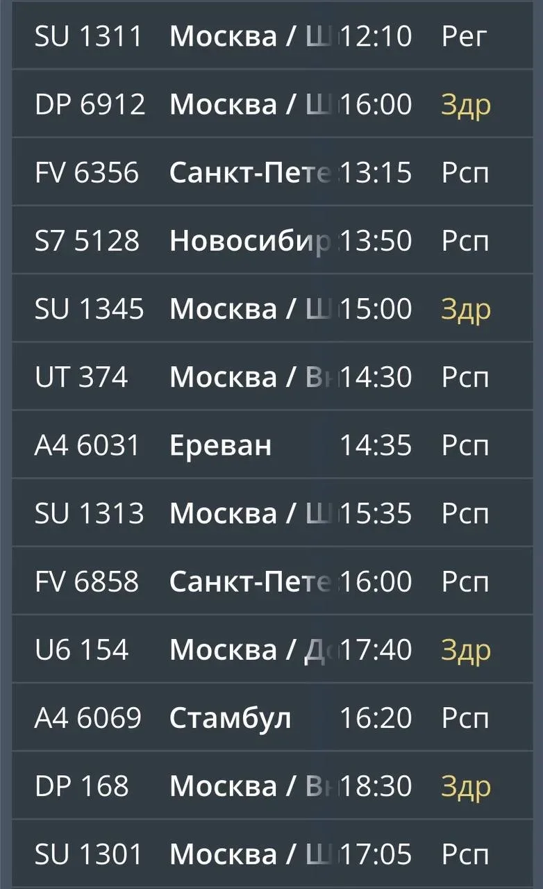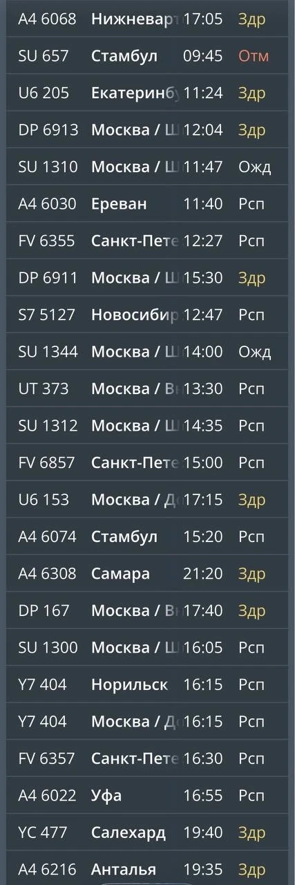 Отменен борт на прилет в Минводы из Стамбула.