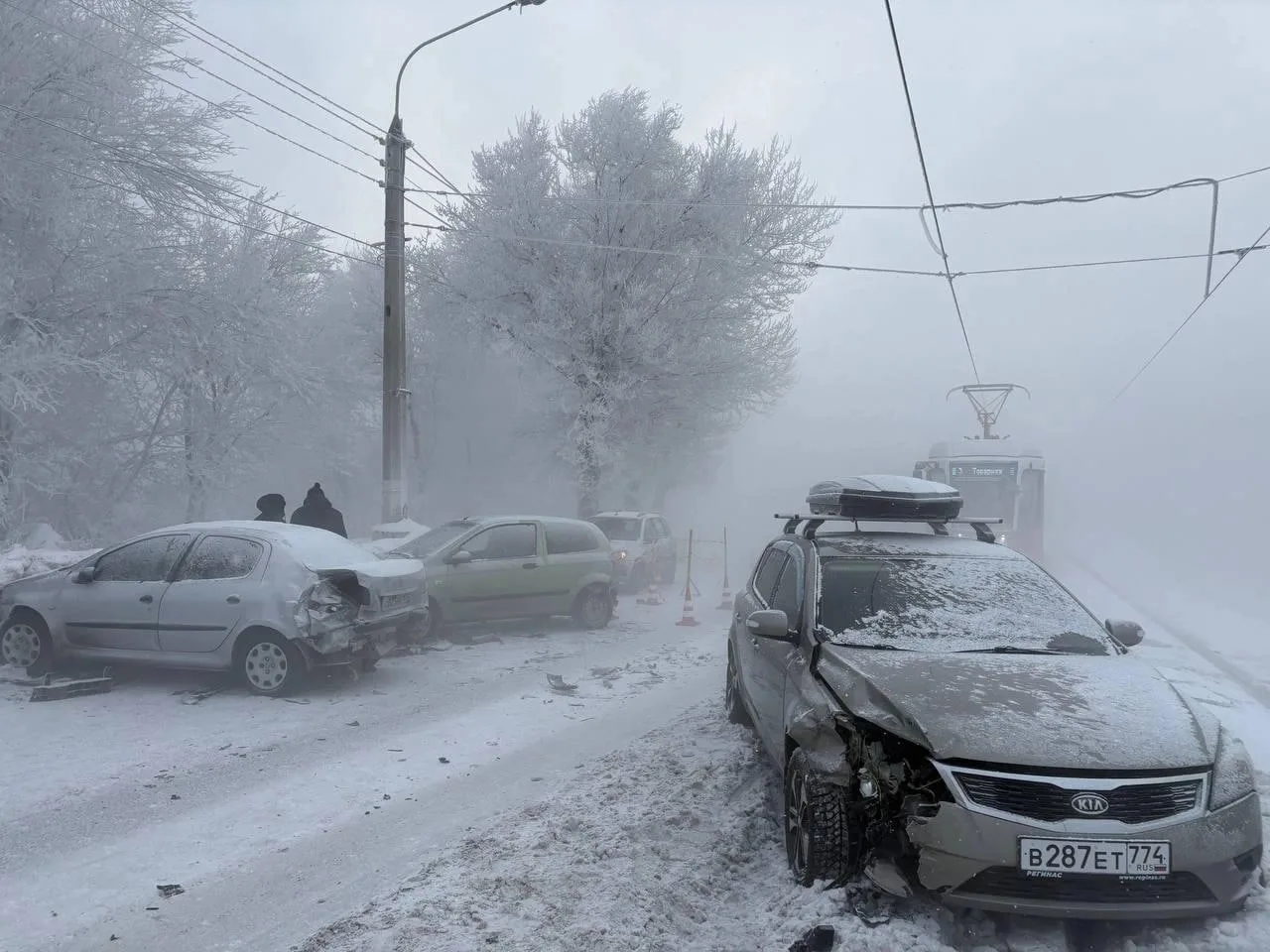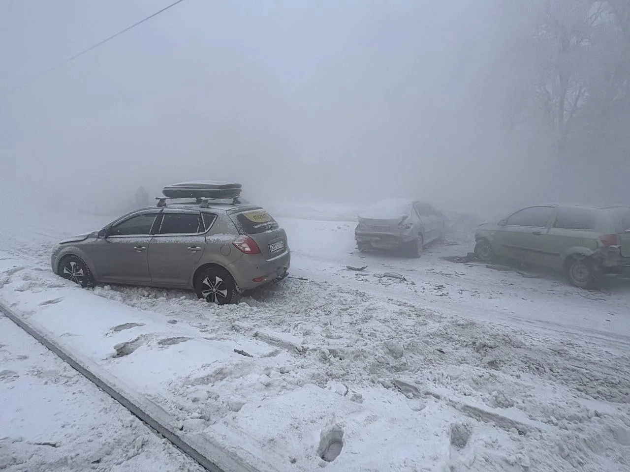 В Магнитогорске произошла авария с участием пяти автомобилей. По данным ГАИ, водитель Peugeot 206 ехал на высокой скорости в условиях тумана и сначала врезался в Lada Granta, затем — в Hyundai Mighty и Hyundai Getz. После этого в Peugeot врезался Kia Ceed.