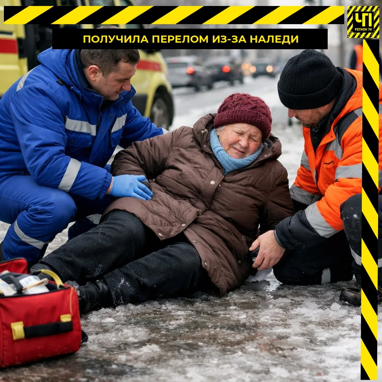 😮 Пенсионерка сломала бедро на скользком тротуаре в Челябинске