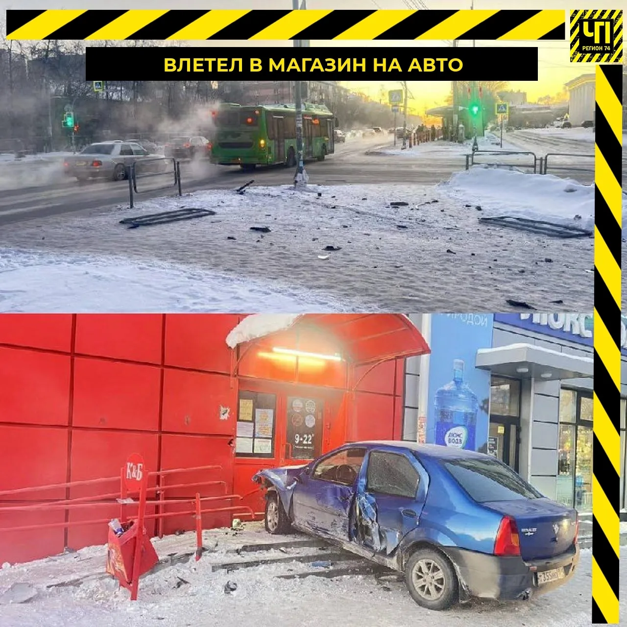 В Советском районе Челябинска автомобиль «Рено-Логан» врезался в ограждение и протаранил вход магазина на улице Доватора. За рулем был 78-летний водитель, пострадавших нет.