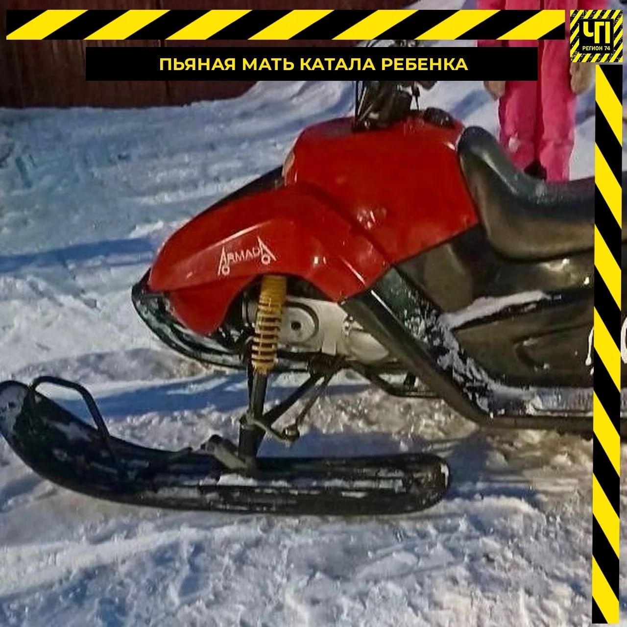 🥴Пьяная мать катала ребенка на снегоходе без шлема