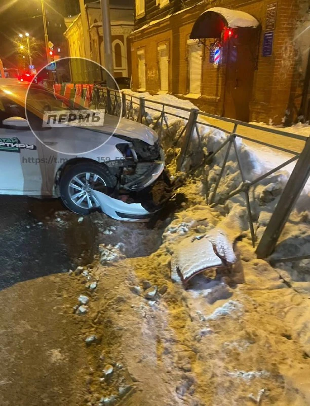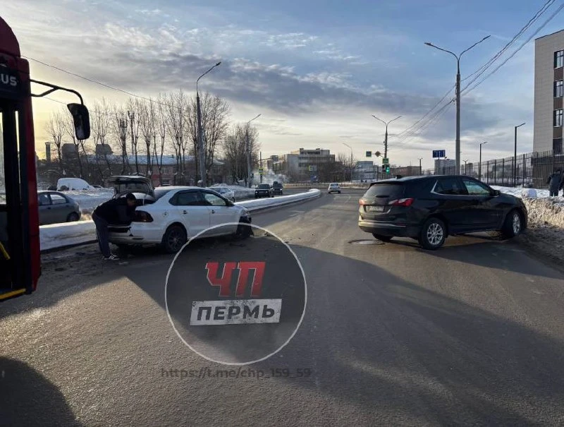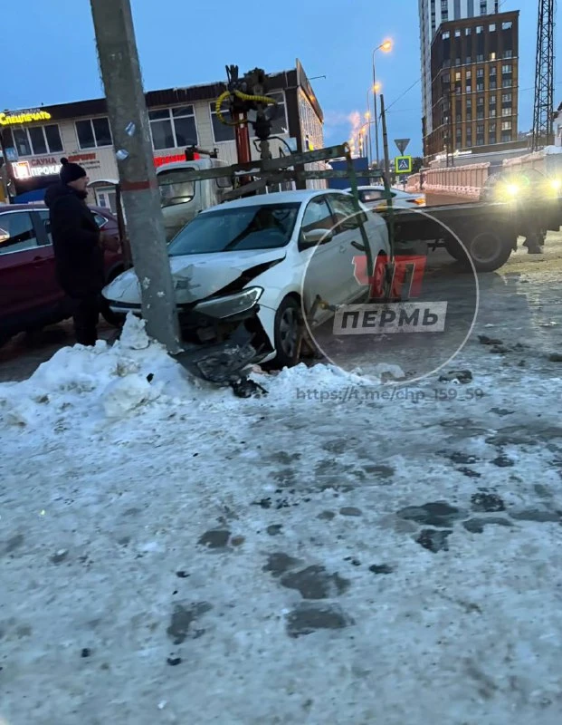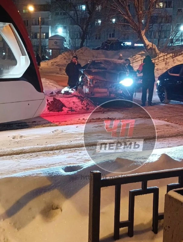 Около Пермской администрации машина влетела в 8 трамвай