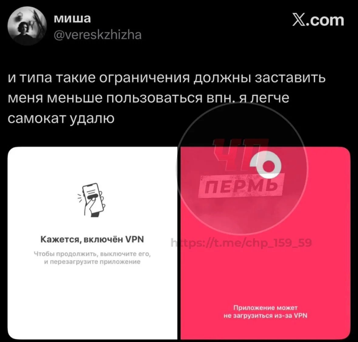 Важный нюанс: если параллельно включить обычный VPN, Telegram перестаёт работать из-за конфликта при туннелировании трафика.