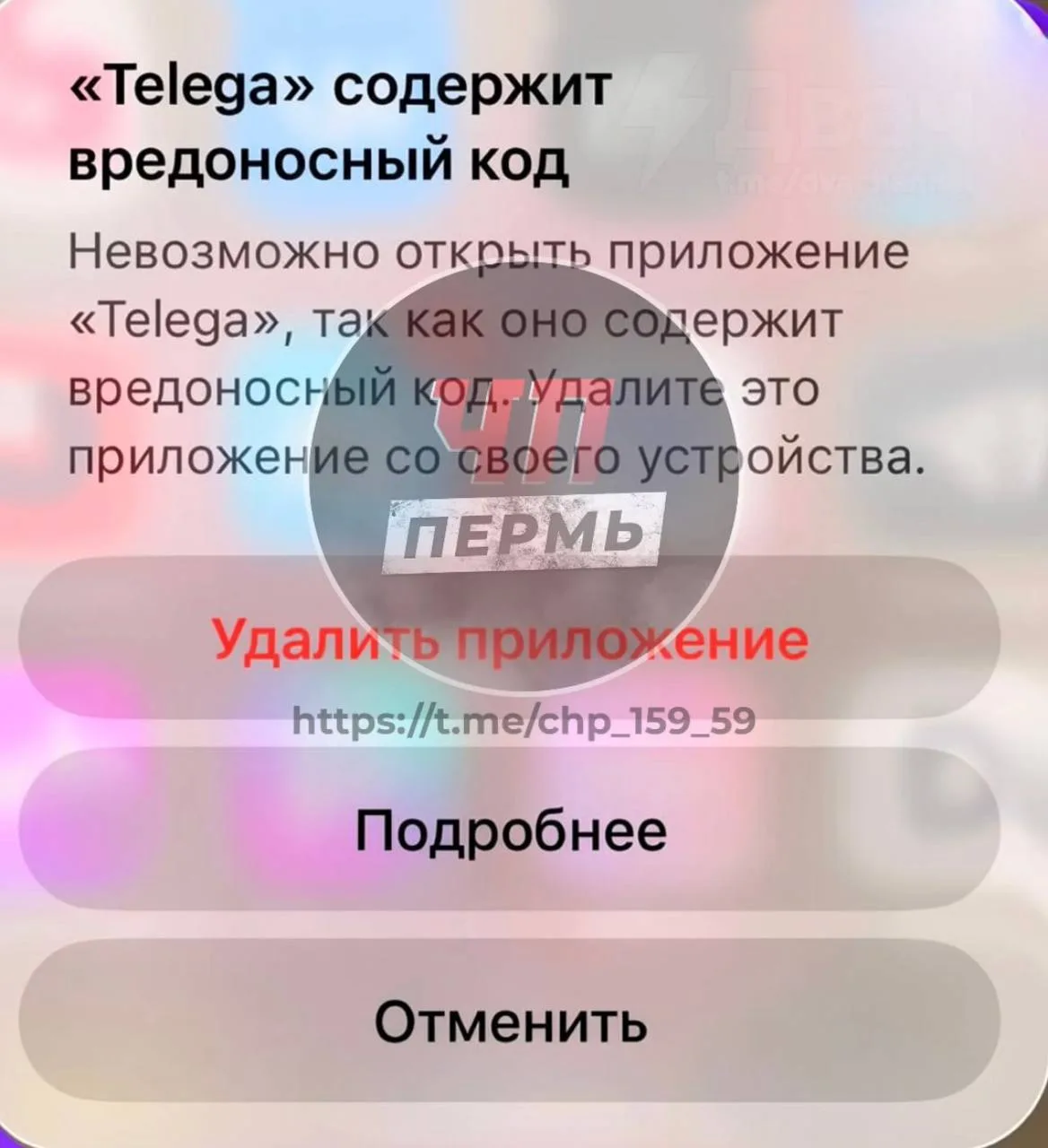Когда юзеры пытаются зайти в этот альтернативный клиент Telegram, который уличили в сливе личных данных юзеров, вылезает предупреждение, что внутри есть вредоносный код. Запустить приложение не выйдет — система разрешает только закрыть или полностью снести его с устройства.