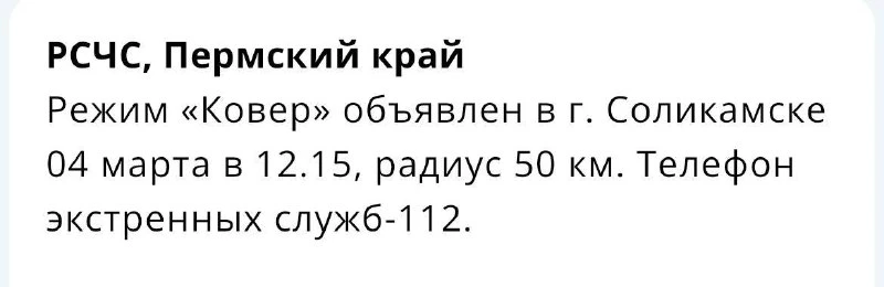 Режим «Ковер» объявлен в Соликамске в Первые