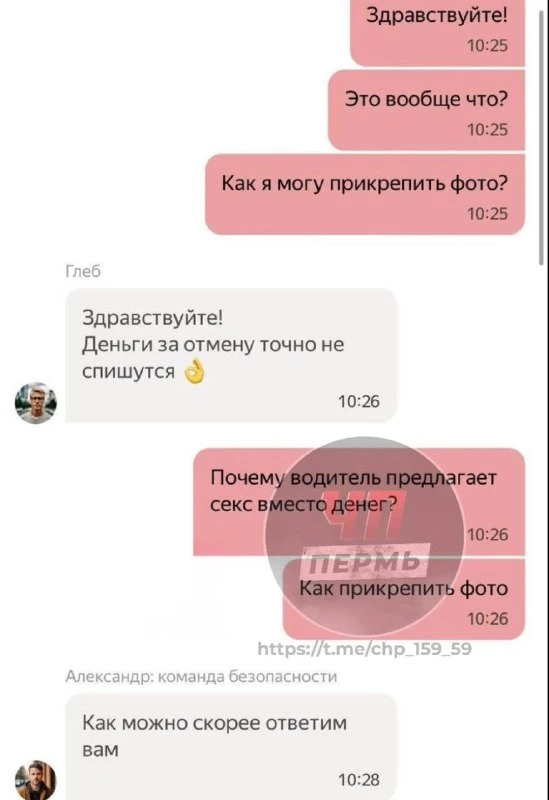 Пассажирка вызвала такси на работу через приложение. Водитель в переписке предложил ей «оплатить поездку сексом». Девушка пожаловалась в поддержку, приложив скриншоты переписки.