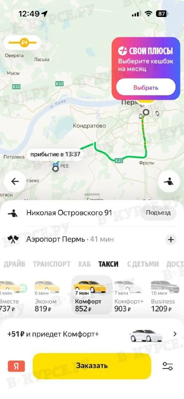 Из плюсов — в приложении представлена исключительно услуга такси. Нет сервисов еды, маркетплейса и прочего. Еще цена немного ниже (сравнили с Яндекс GO).