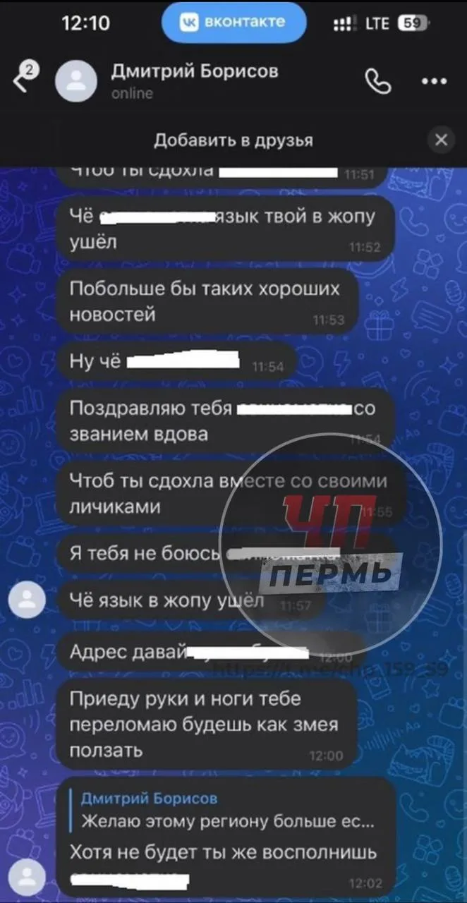 У Трутнева остались жена и двое детей. После потери мужа ей стали поступать угрозы и оскорбления от некоего Дмитрия Борисова. По этическим соображениям мы не можем дословно рассказать обо всем, что было написано в этих сообщениях, но приведем часть сообщений: