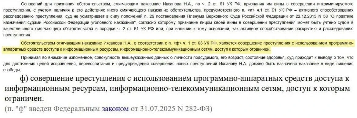 Мужчина из Тульской области в 2025 году купил мефедрон через сайт, который работает только с VPN. Суд признал VPN отягчающим обстоятельством и приговорил наркомана к 1 году и 8 месяцам колонии. Второе дело рассмотрели в Республике Коми. Там мужчину тоже приговорили по делу о покупке наркотиков с VPN как отягчающим обстоятельством. Второй наркоман получил три года заключения.