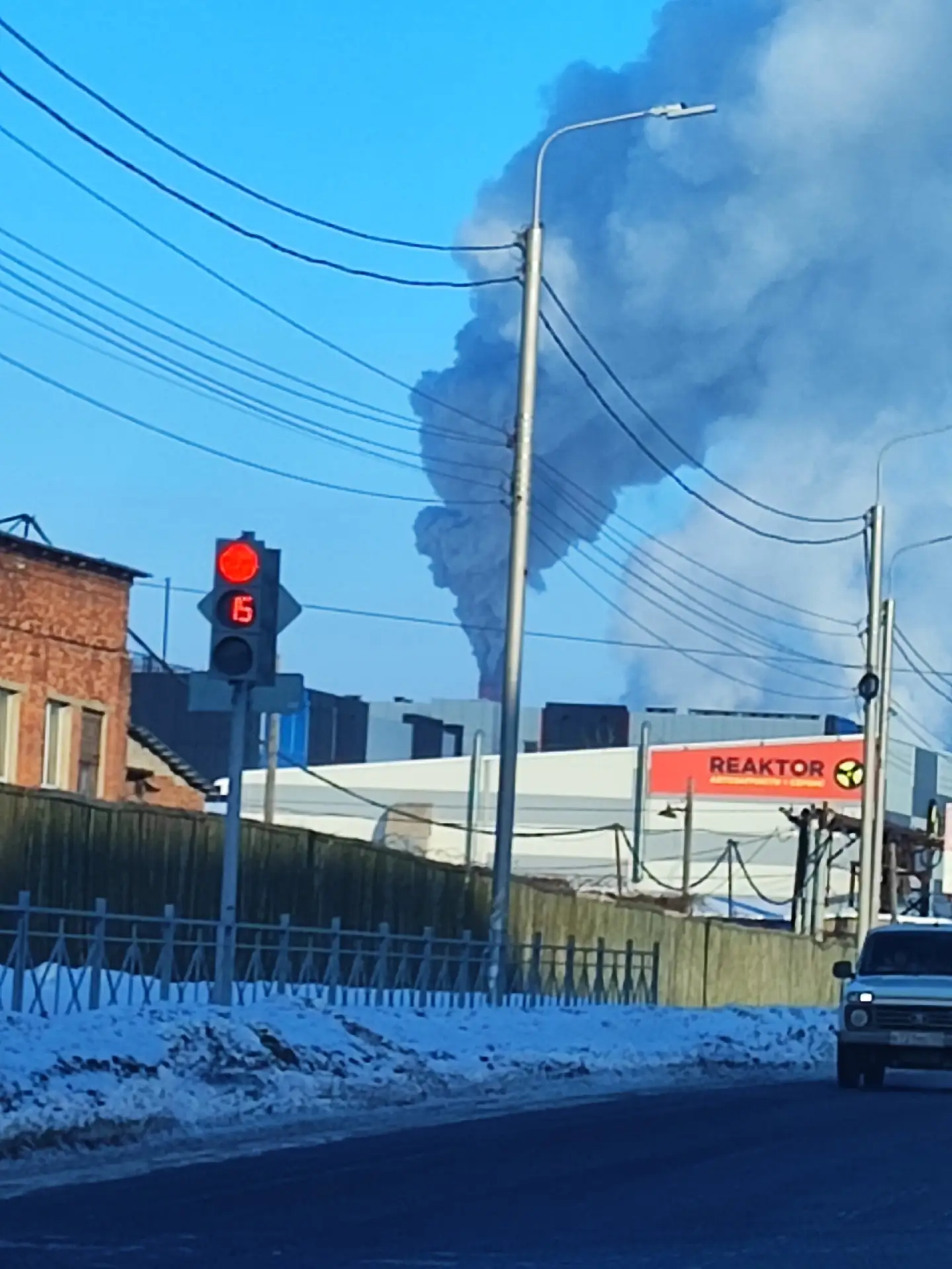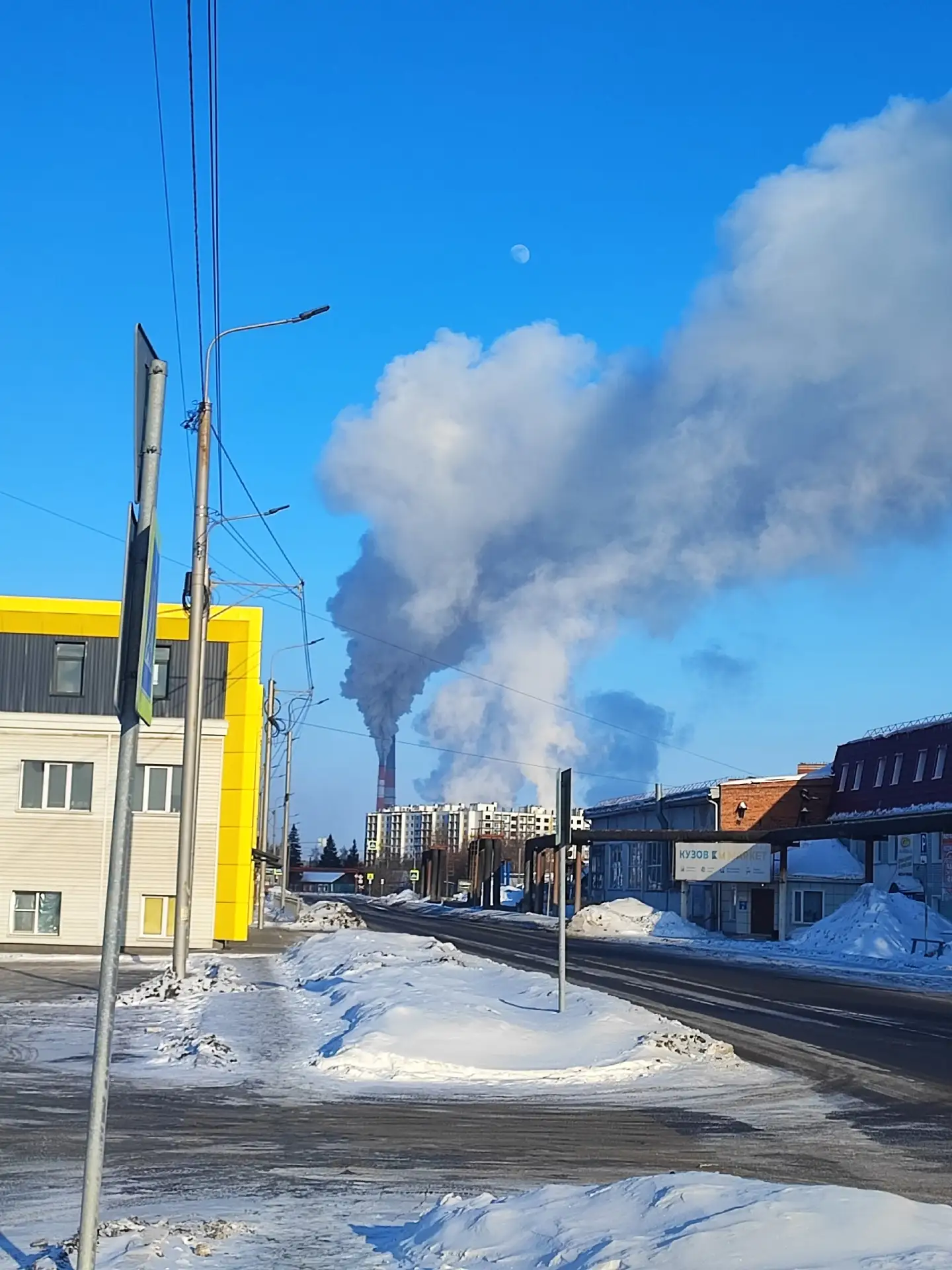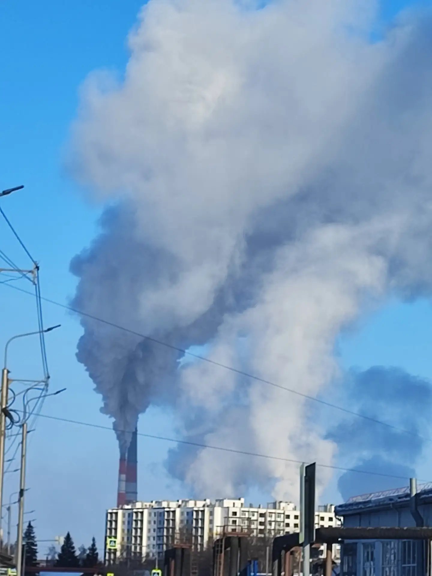 Фото с улицы Омская 194А, черные выбросы с ТЭЦ-5 идут на город.