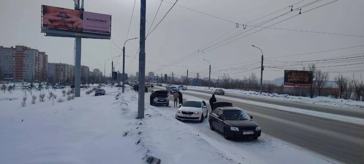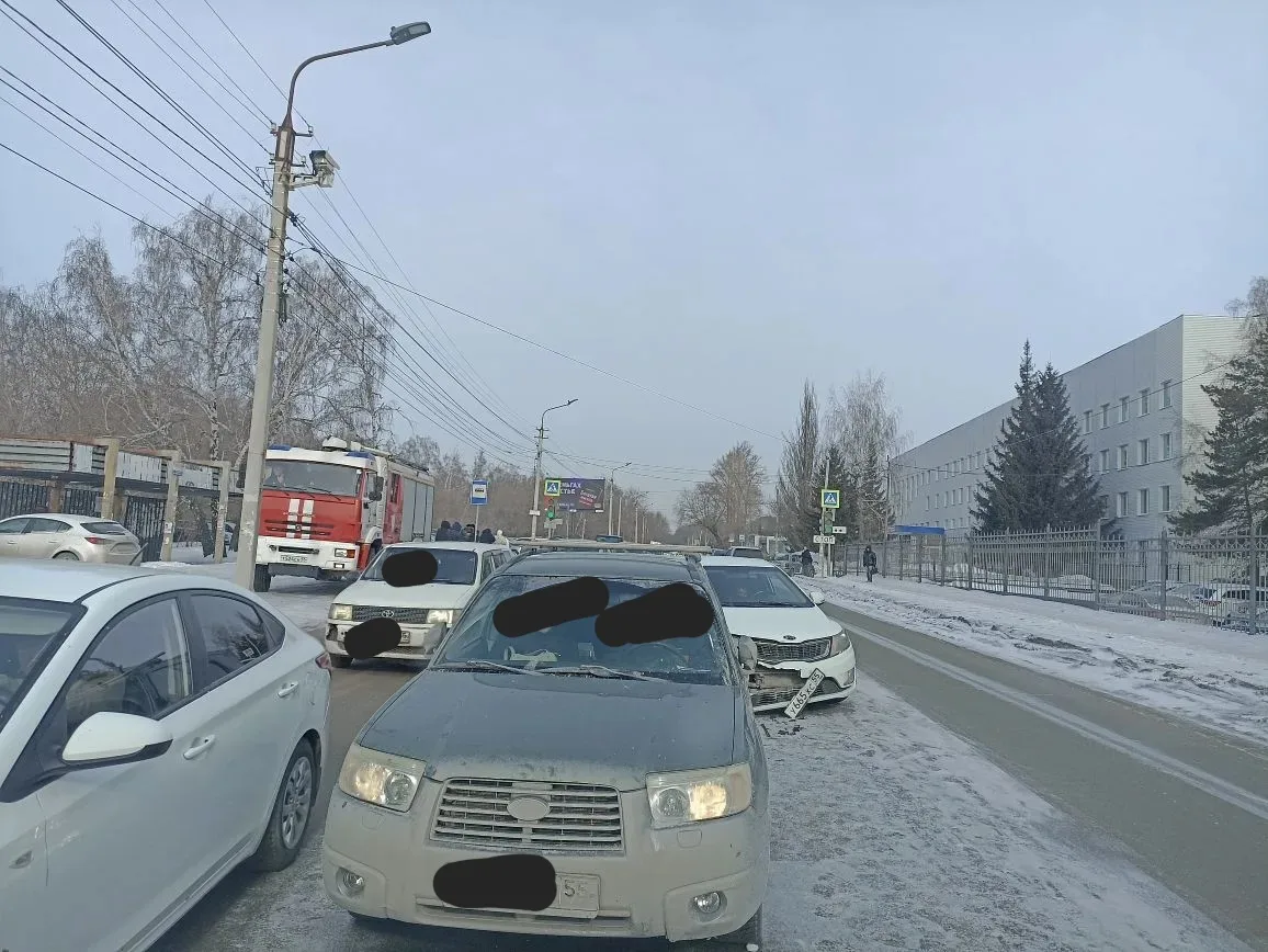 На левом берегу Омска произошло массовое ДТП с участием пяти автомобилей