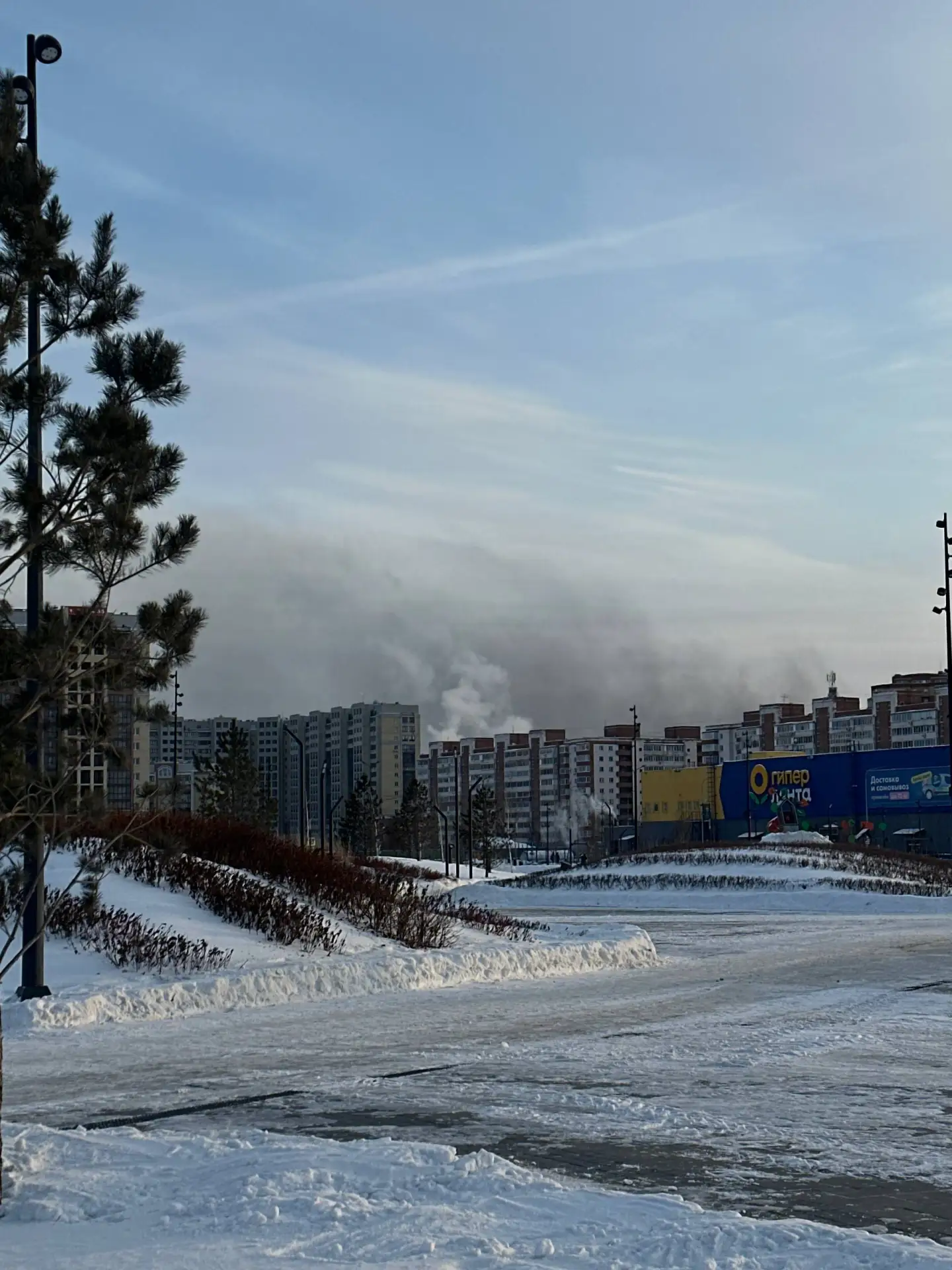 ТЭЦ-5 сейчас. Жителям Ростовки, Левобережки, Новомосковки и близлежащих к ТЭЦ-5 дач лучше пока не выходить на улицу. Люди жалуются на першение в горле. Неблагоприятные экологические дни. Ветра практически нет. Написали в прокуратуру, росприроднадзор. Роспотребнадзор разыскивается. Будем настаивать на взятии грунта для экспертизы.