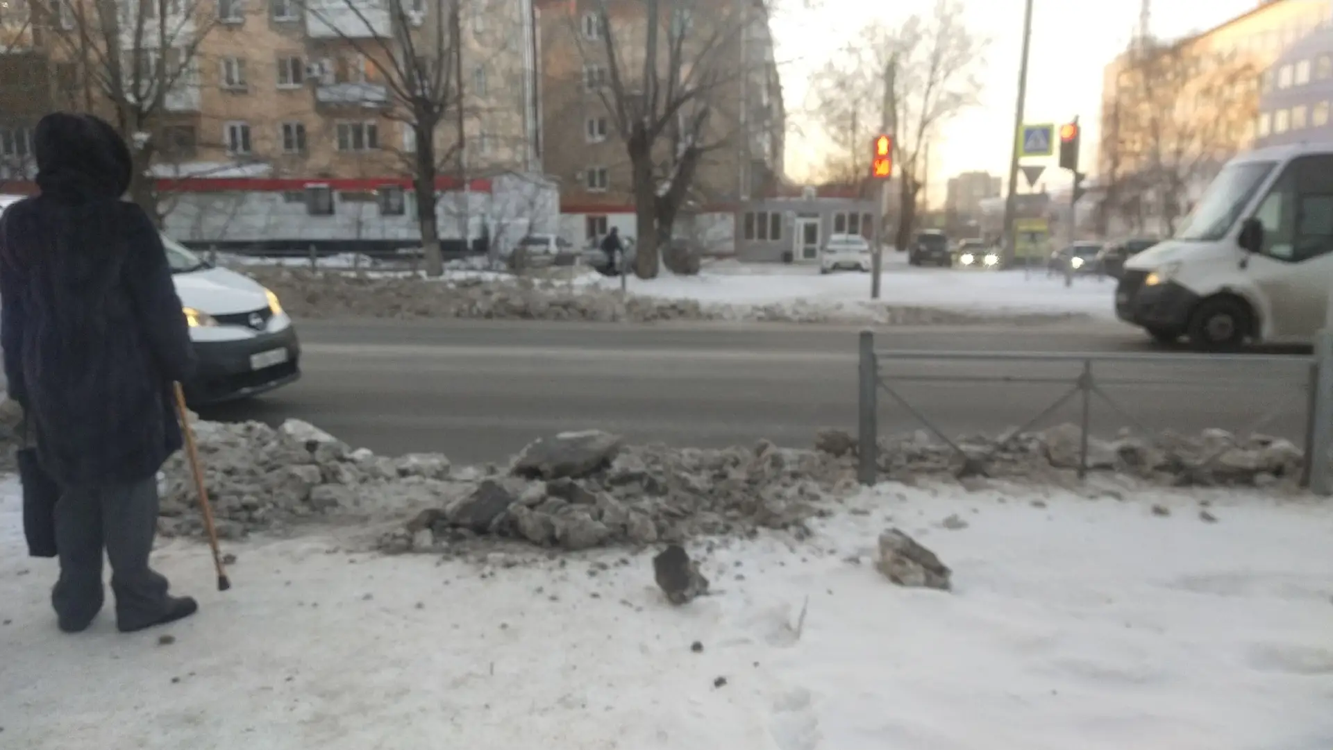 Спасибо,что почистили проезжую часть, но почему эти завалы никто не чистит за техникой на пешеходных переходах??? Люди сами как могут протаптывают....