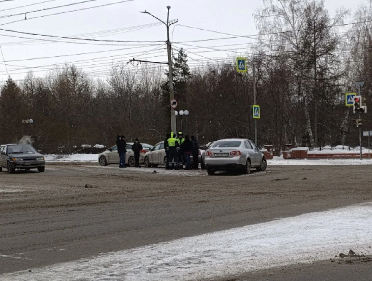 Последствия ДТП на перекрестке пр. Карла Маркса и ул. Циолковского.
