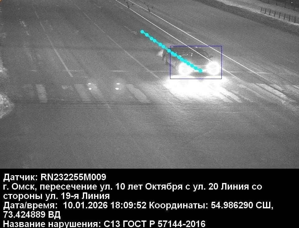 На улице 4‑я Челюскинцев возле пешеходного перехода камера фотофиксации зарегистрировала нарушение: водитель автомобиля «Тойота Витс» не предоставил преимущество в движении пешеходу. Благодаря бдительности пешехода инцидент не привёл к трагическим последствиям. Нарушителю — 58‑летнему омичу — был назначен штраф.