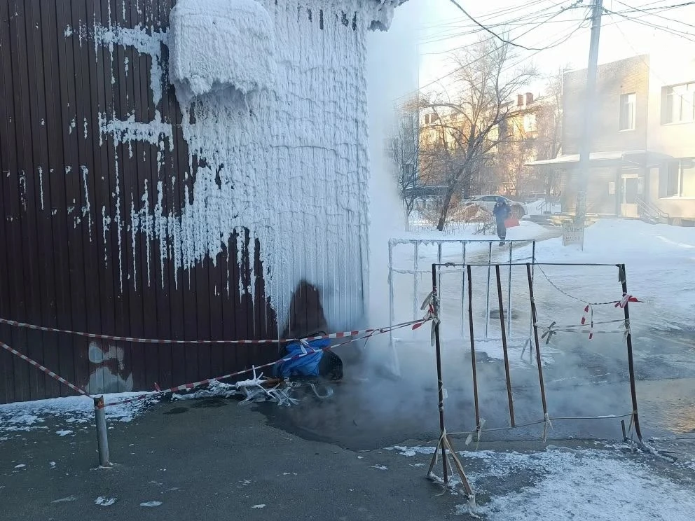 Во дворе дома по ул. Серова 16а уже вторые сутки идёт кипяток из трубы отопления. Яма, откуда идет вода, увеличивается. Звонили во все инстанции, но работы не начинались. После звонка на 112 хотя бы огородили порыв. Хотелось бы знать, когда начнутся работы по восстановлению трубы!