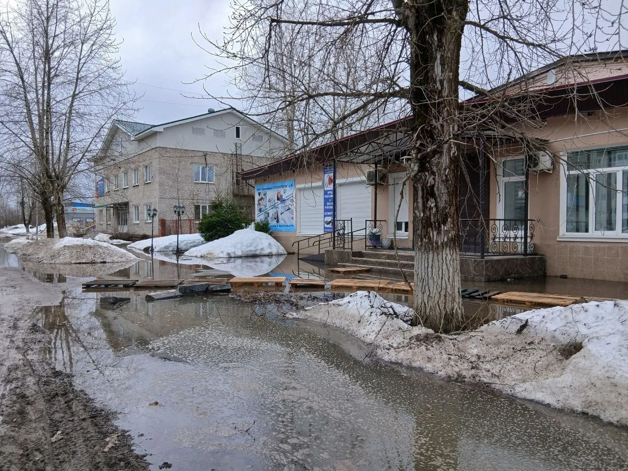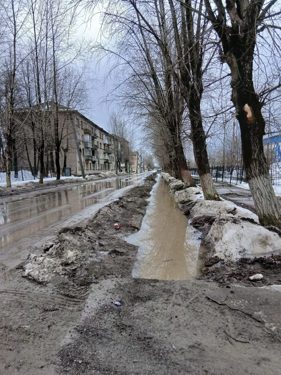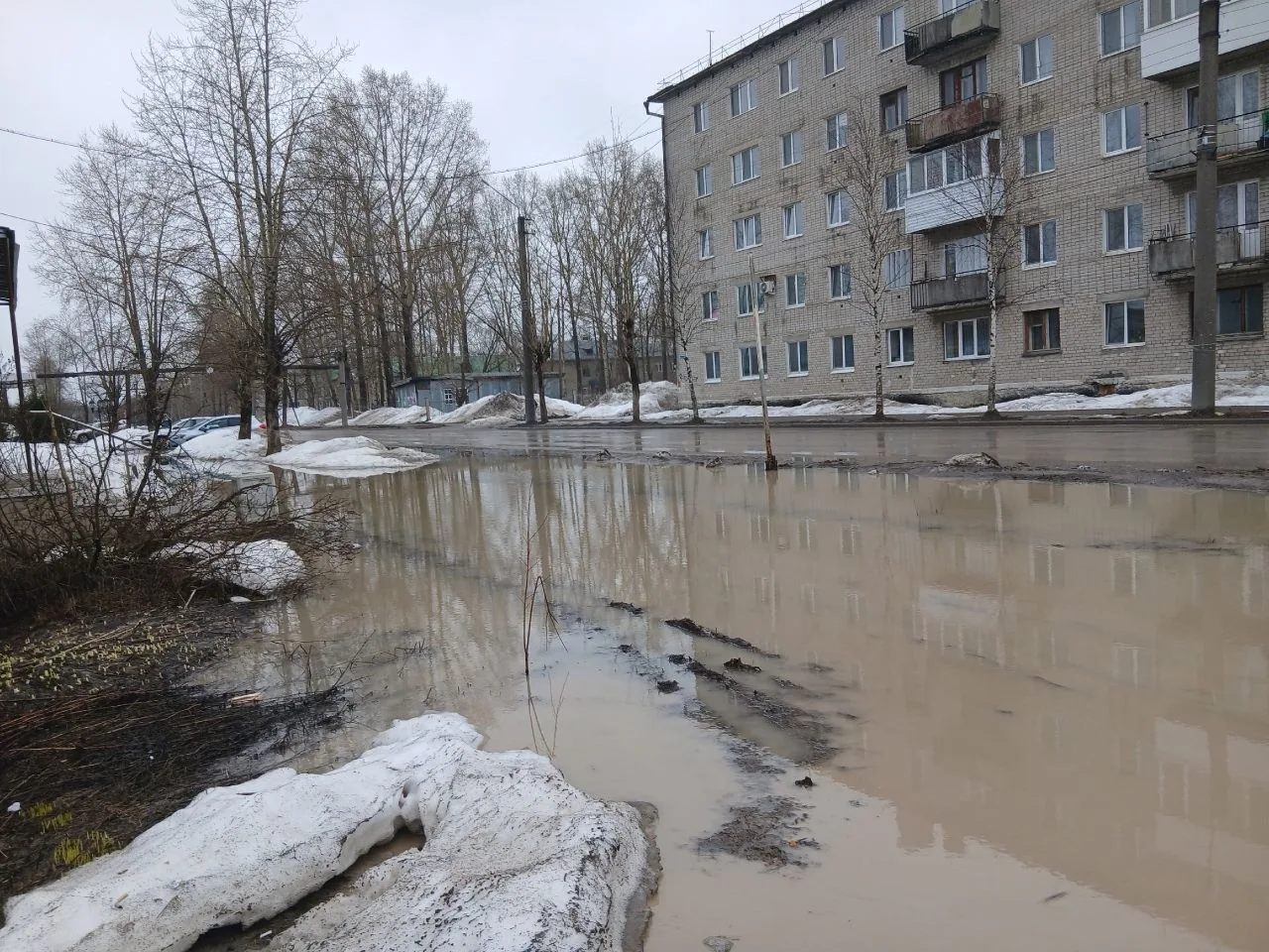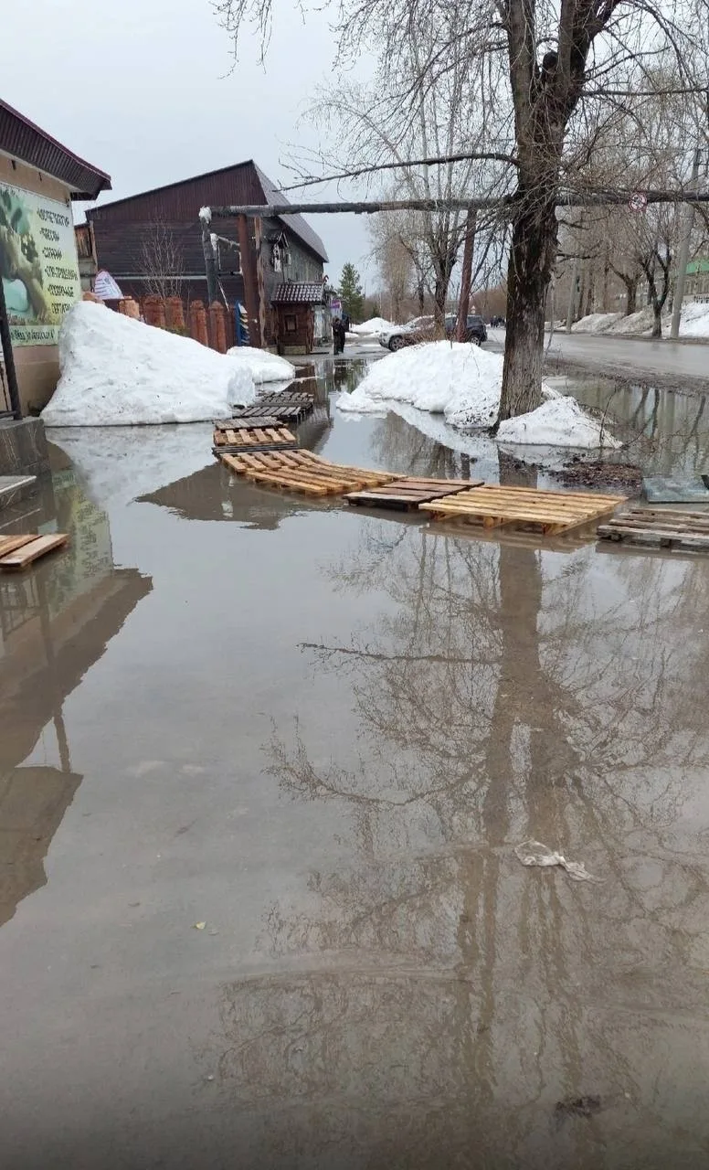Яйва стоит вся в воде. Такое чувство, что река вышла из берегов.Дороги затоплены, канавы полные.К бане можно пройти только в резиновых сапогах. Никто отводом воды не занимается.