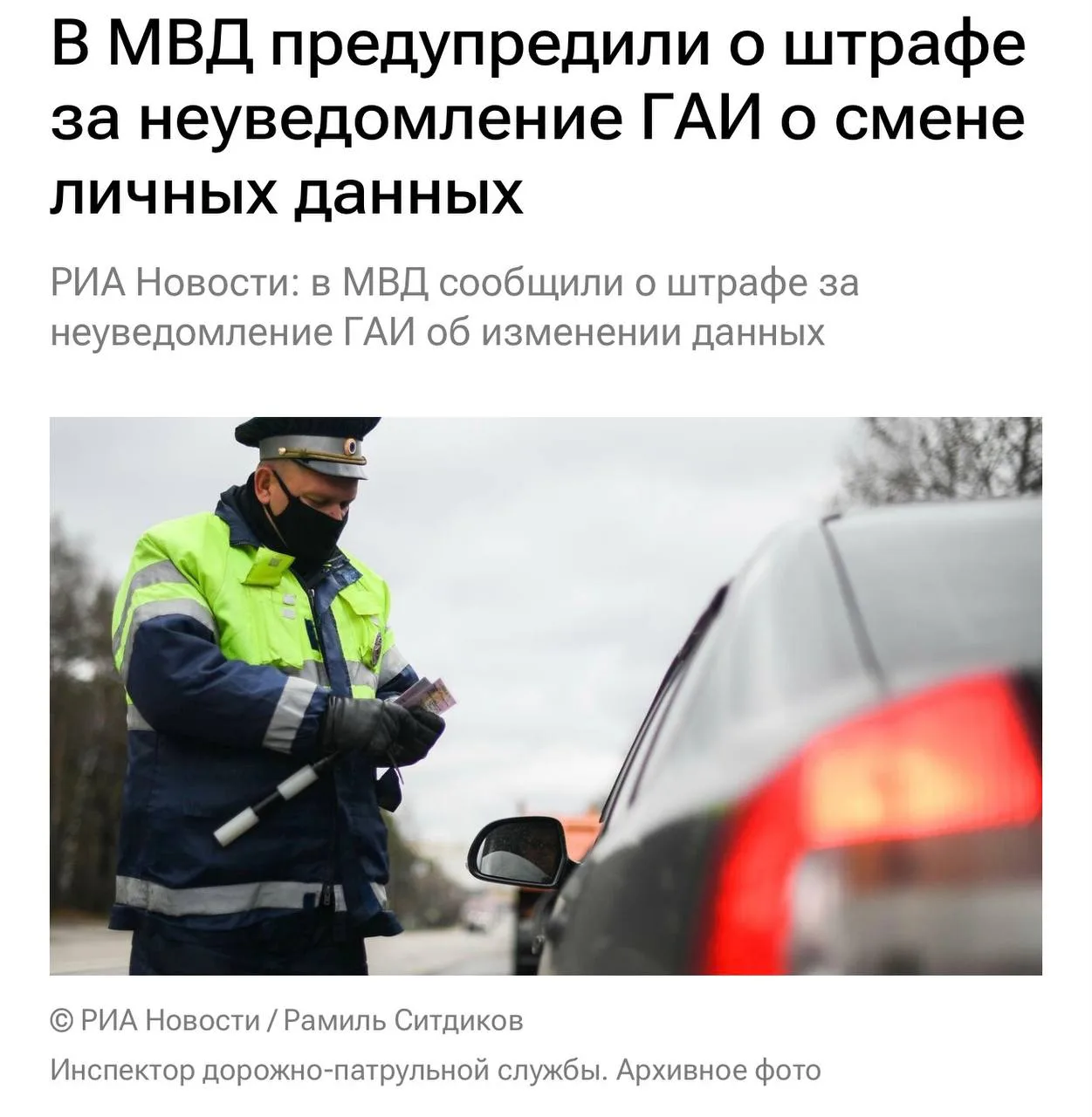 Штраф до 2 тыс. рублей могут назначить водителю, если он не уведомит госавтоинспекцию о смене фамилии или прописки в течение десяти дней, напомнили в пресс-службе МВД России.