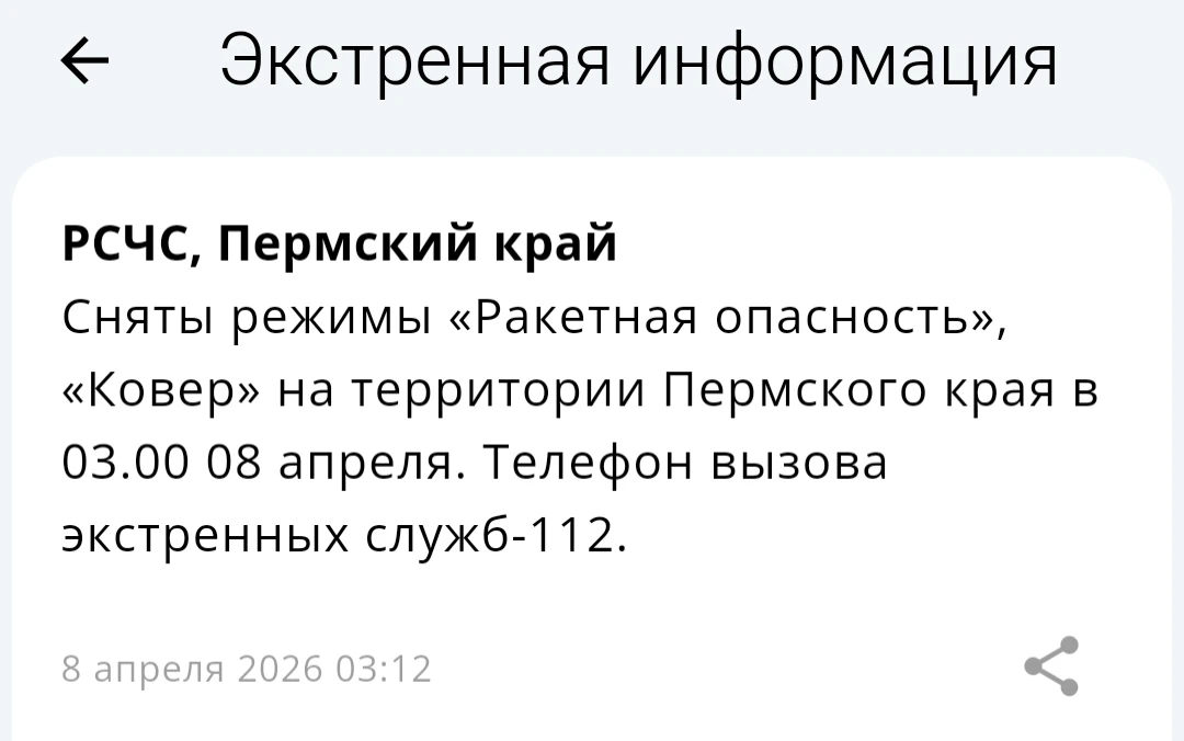 Сняты режимы Беспилотная опасность, Ковёр на территории Пермского края.