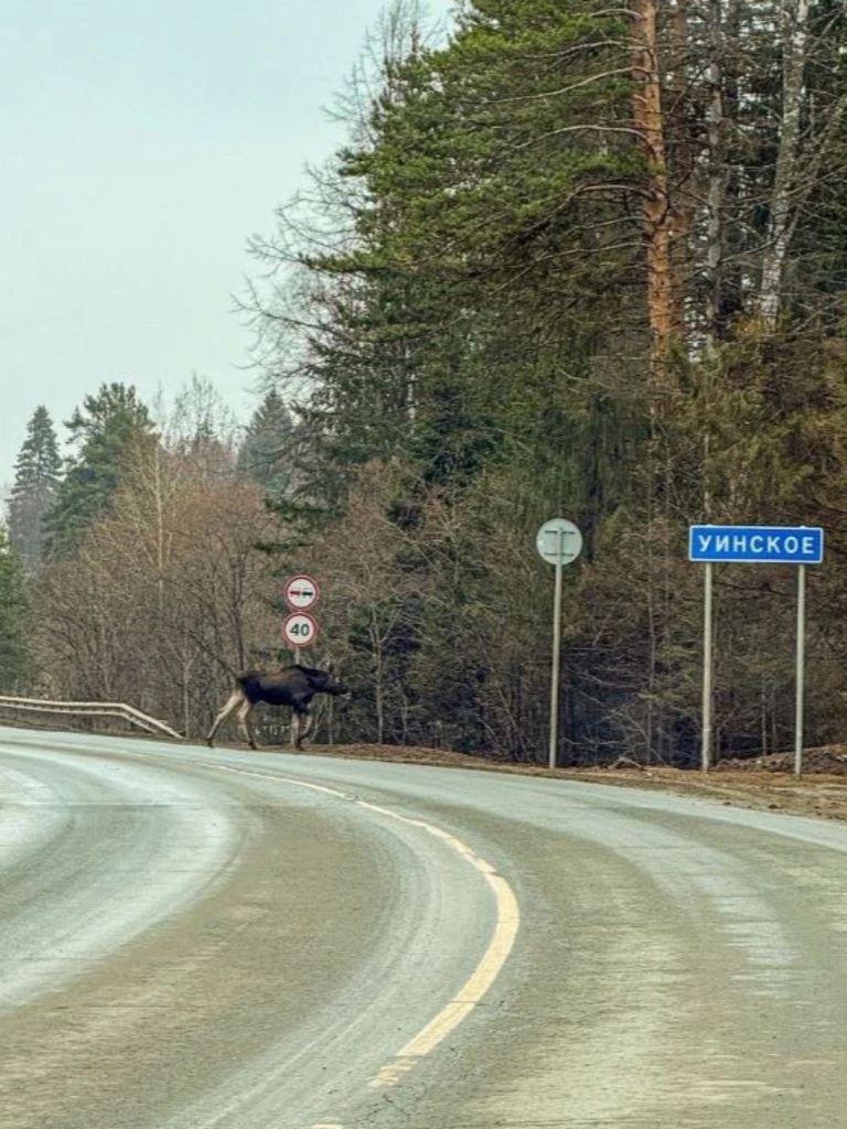 Вчера заметили лося в Уинском. Будьте внимательны на дорогах!