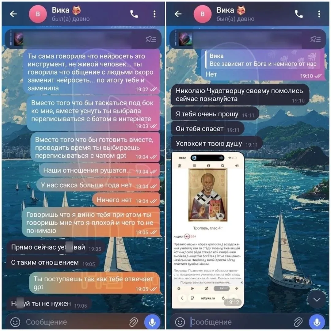 По словам бойфренда пропавшей, около месяца назад она стала агрессивной, отказывалась общаться и всё время чатилась с GPT, скрывая переписку от всех. Утверждала, что только нейронка её понимает и не осуждает. При этом после пропажи она перестала заходить в соцсети и не отвечает на звонки близких.