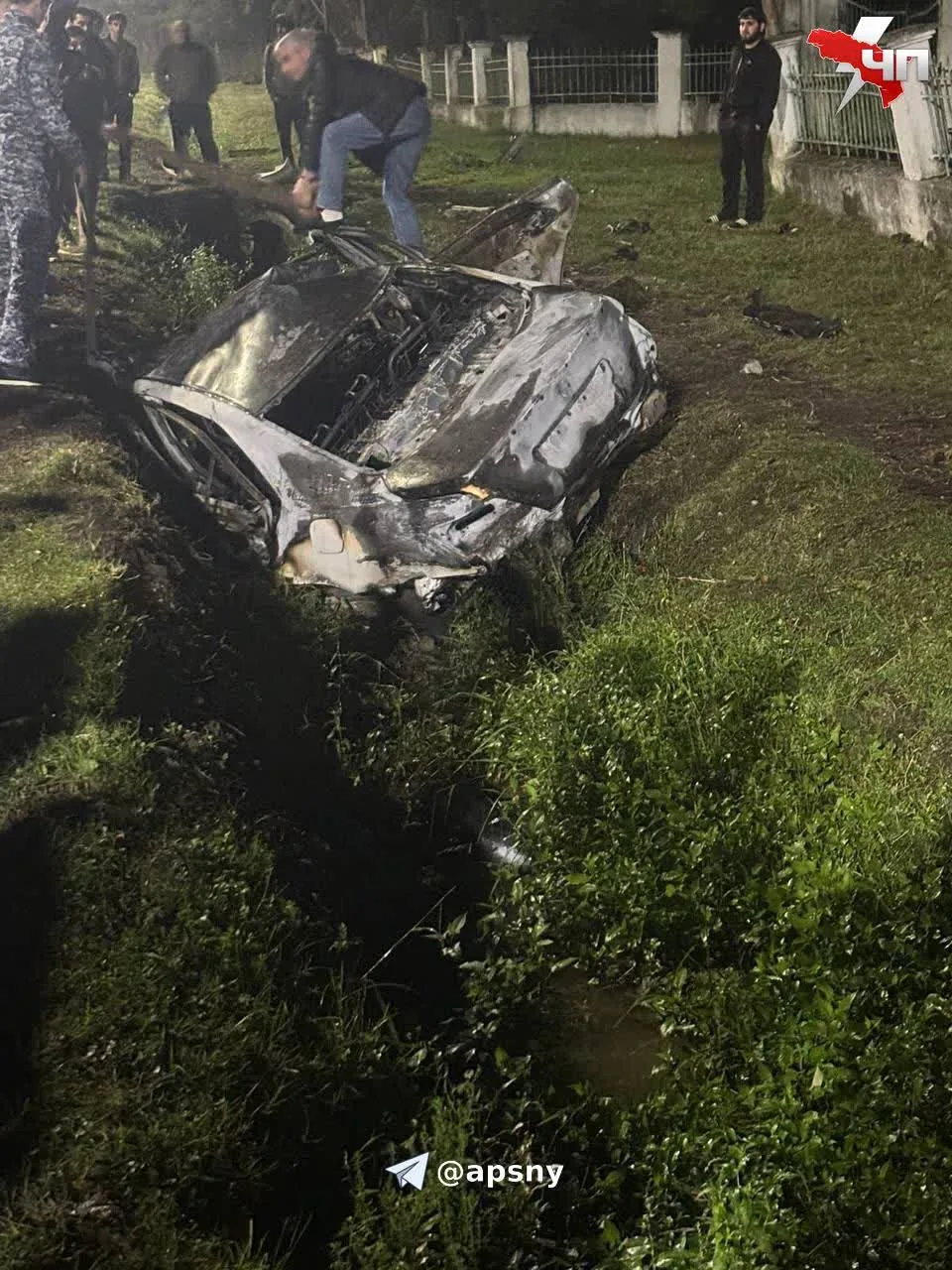 🔺 Начальник ГАИ Дамей Авидзба сообщил, что около 23:10 автомобиль съехал в кювет и загорелся.