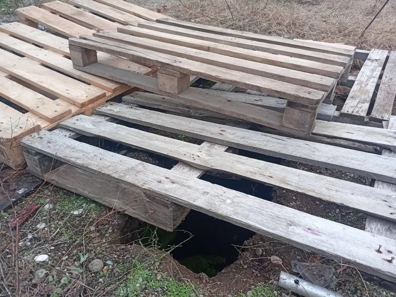 👉 Сейчас провал закрыт палетами, в понедельник его засыплют.