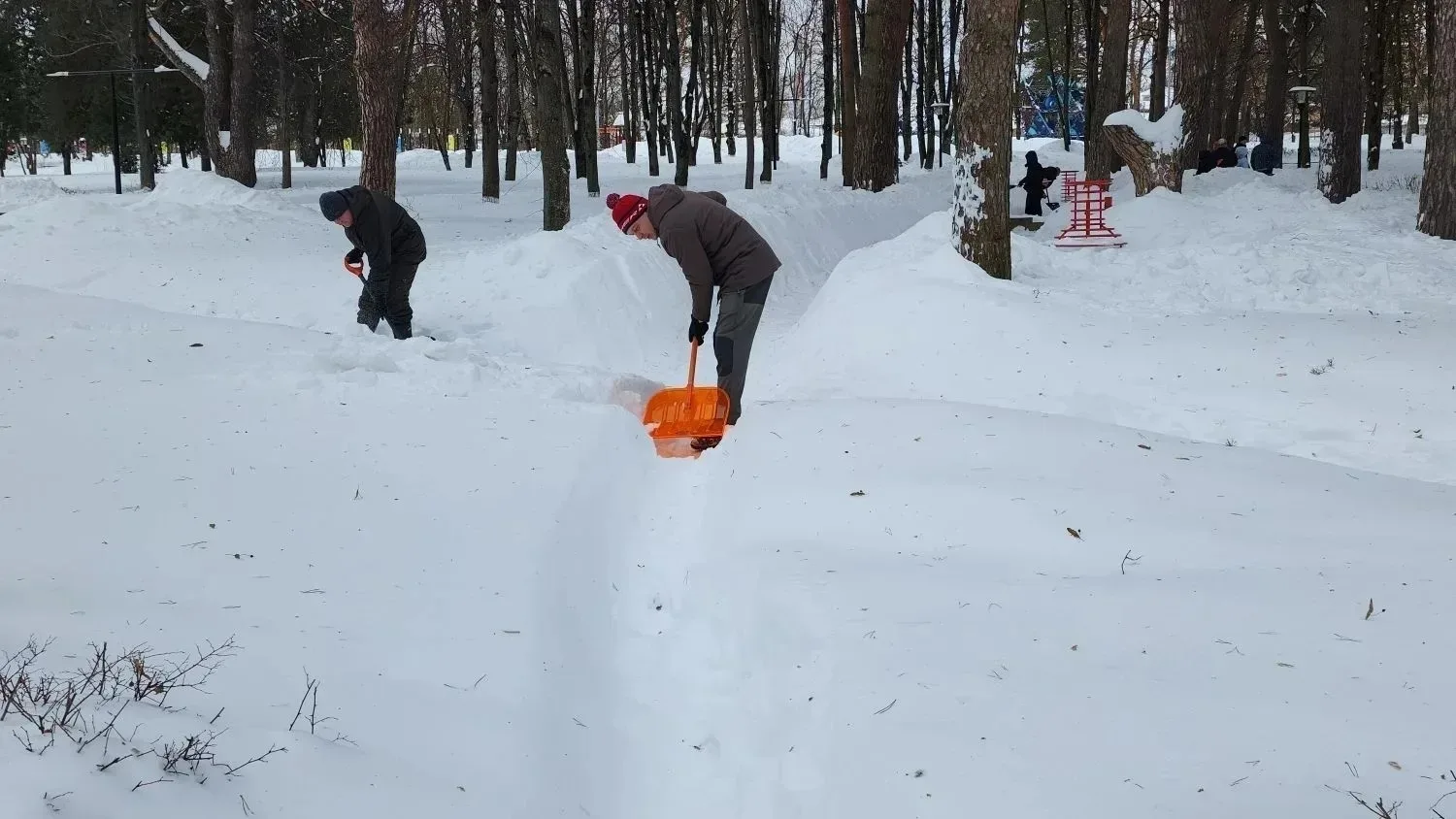 К уборке снега уже присоединились волонтёры, коллективы учреждений, общественники, депутаты, сотрудники администрации. Вместе с коллективом МКУ «Алексин сервис» в парке Химик расчистили детскую и спортивные площадки, пешеходные дорожки.
