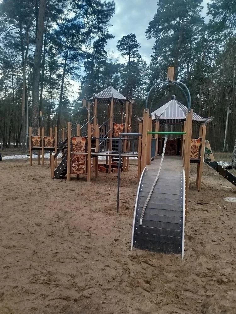 На особо охраняемой природной территории уже в конце прошлого года открылась новая стилизованная детская площадка и установлены скамейки.