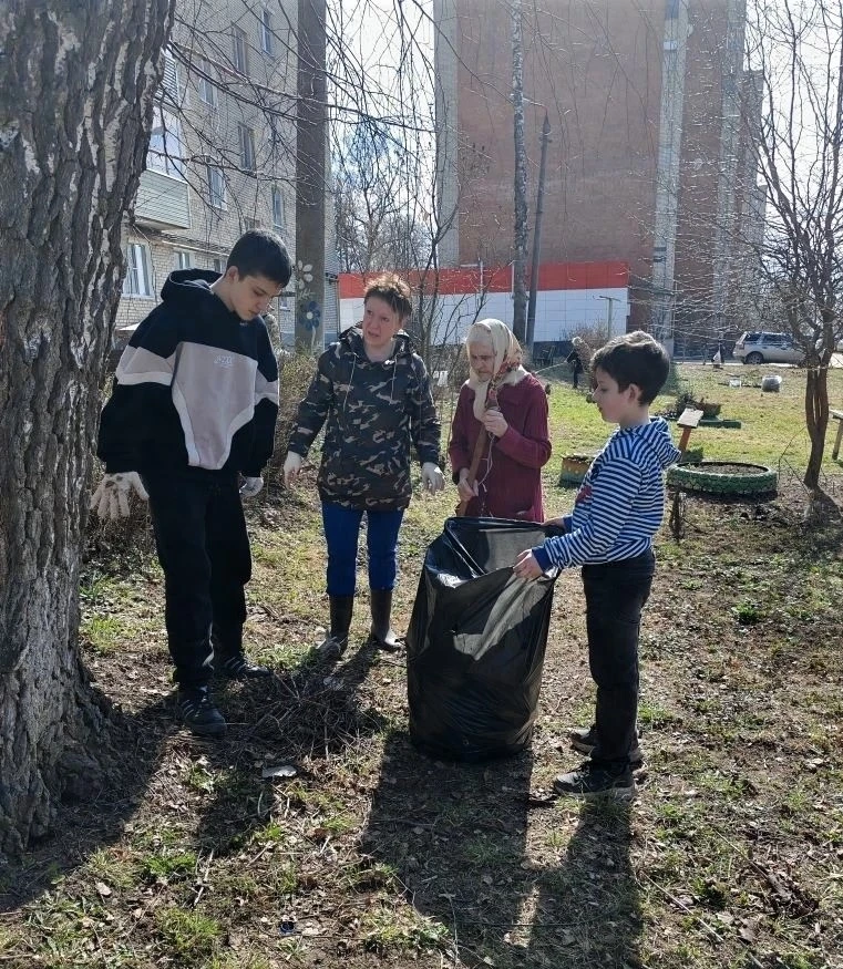 Волонтёры, школьники, сотрудники учреждений, предприниматели и неравнодушные жители собирают прошлогодний мусор, ветки и листву, приводят в порядок общественные пространства, места воинской славы, территории школ, детских садов, домов культуры и библиотек.