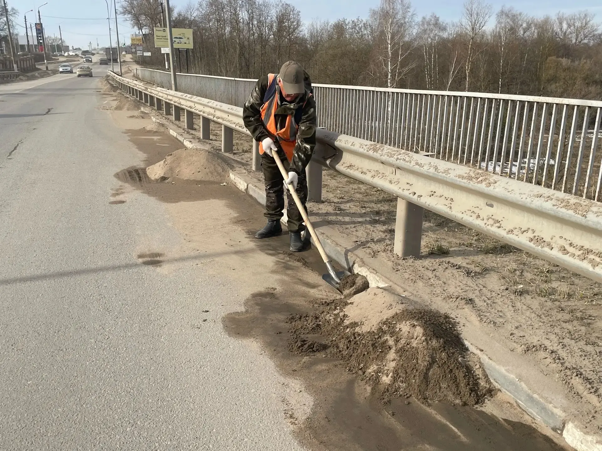 В Алексине продолжаются работы по уборке песка и грязи с автодорог и тротуаров.