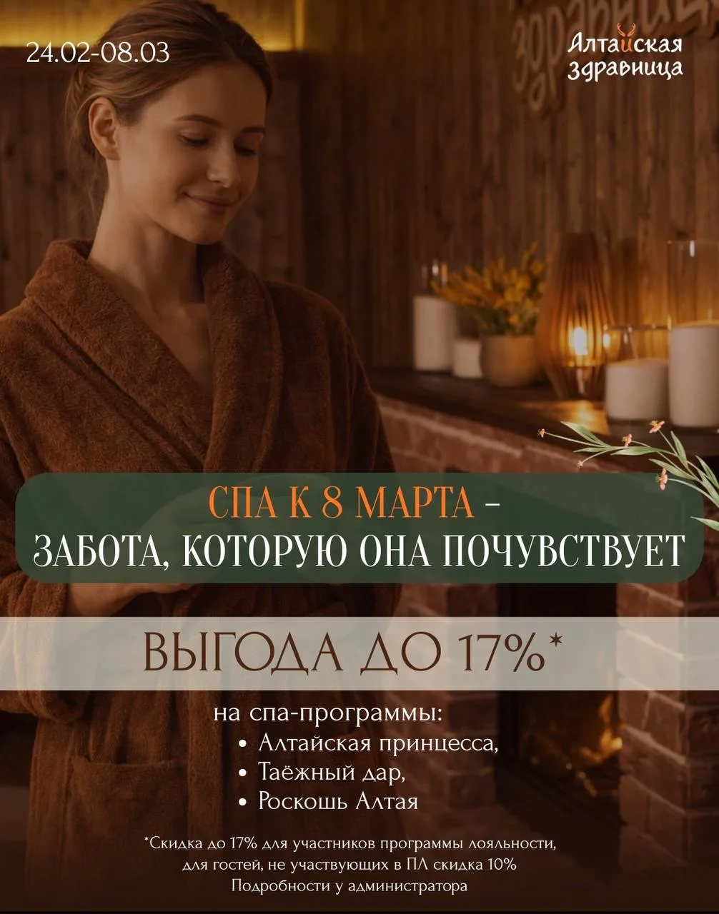Это время для себя: тёплое прогревание в фитосауне с ароматами тайги, спокойствие, мягкие прикосновения и редкое чувство, когда можно выдохнуть и никуда не спешить.