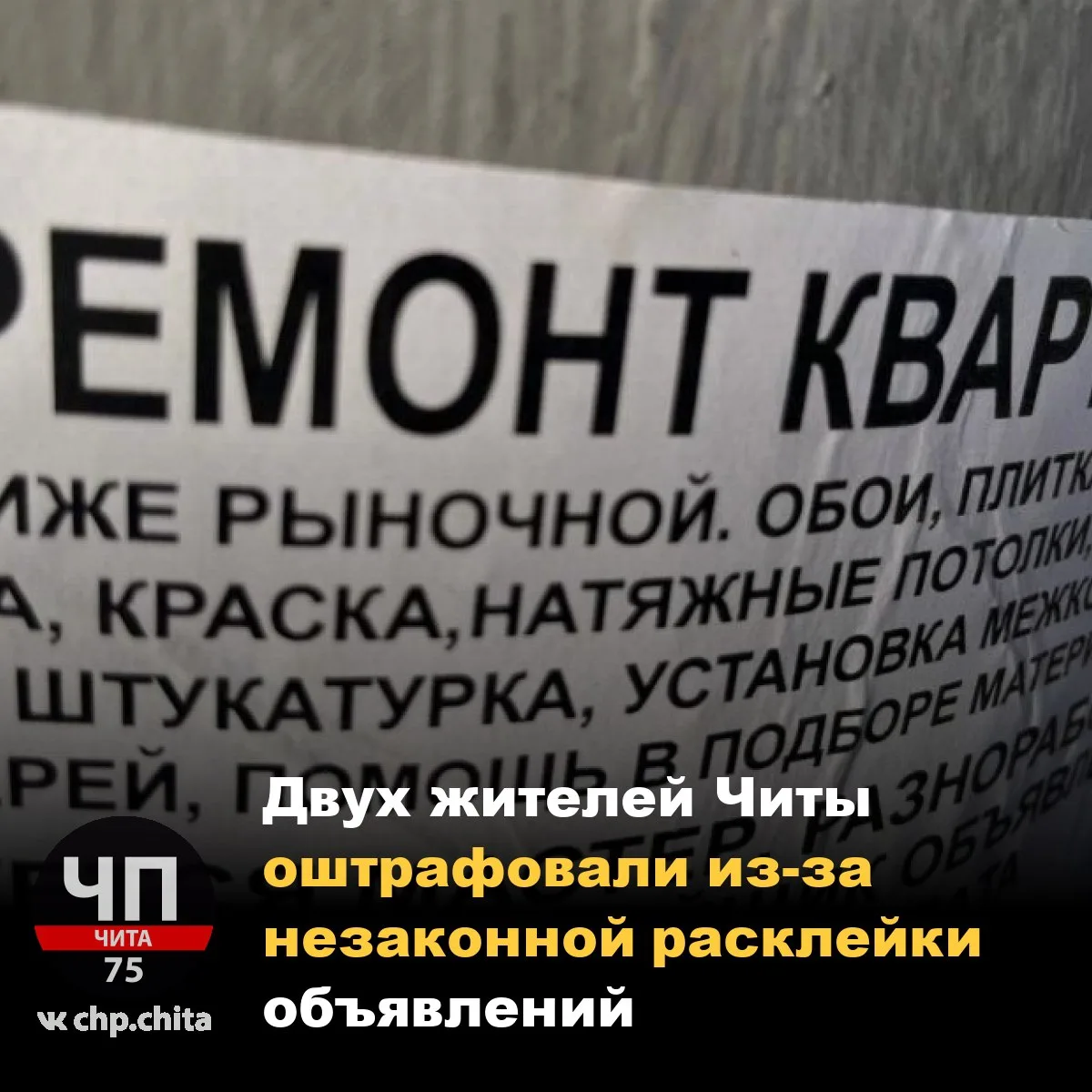❗ Двух жителей Читы оштрафовали из-за незаконной расклейки объявлений