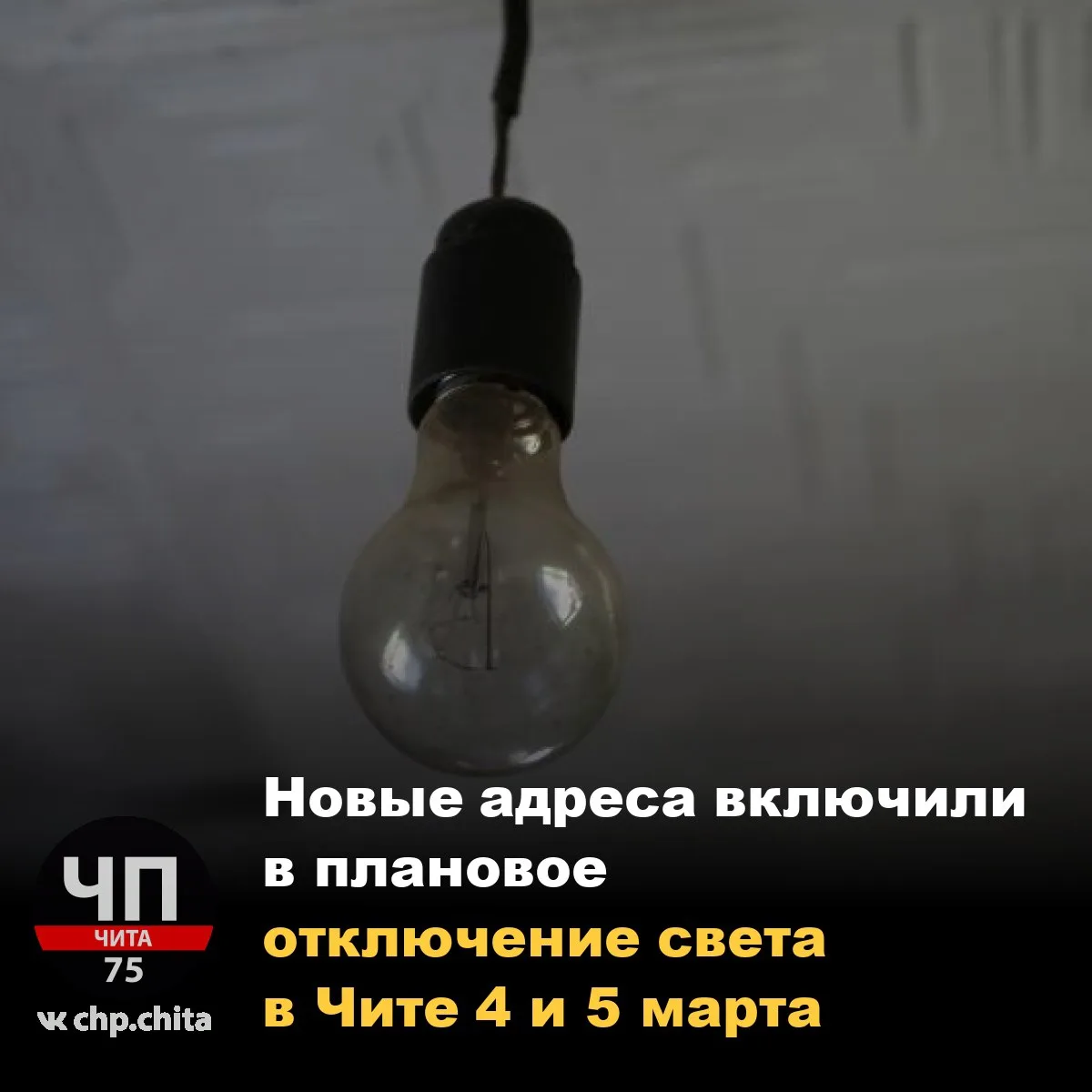 🛑 Новые адреса включили в плановое отключение света в Чите 4 и 5 марта